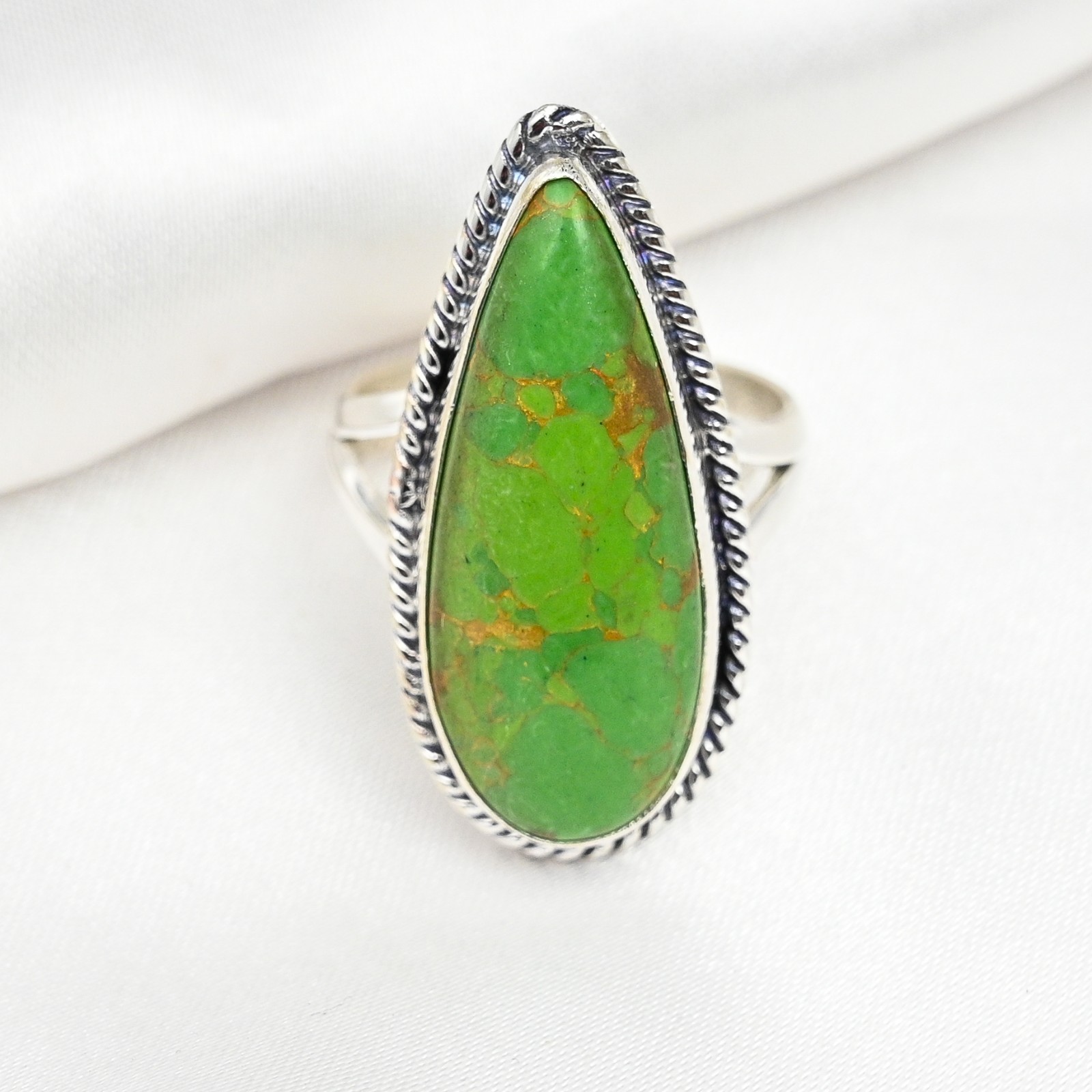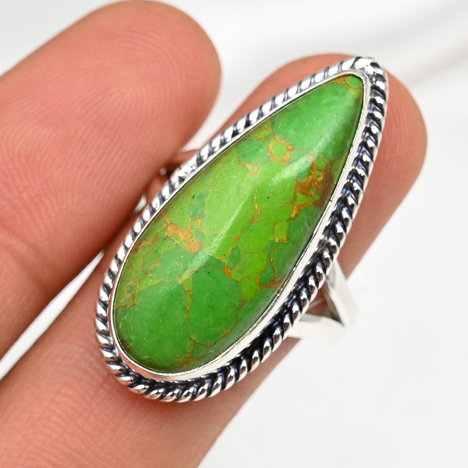 AAA Green Copper Turquoise Gemstone Handmade 925 Sterling Silver Jewelry Ring