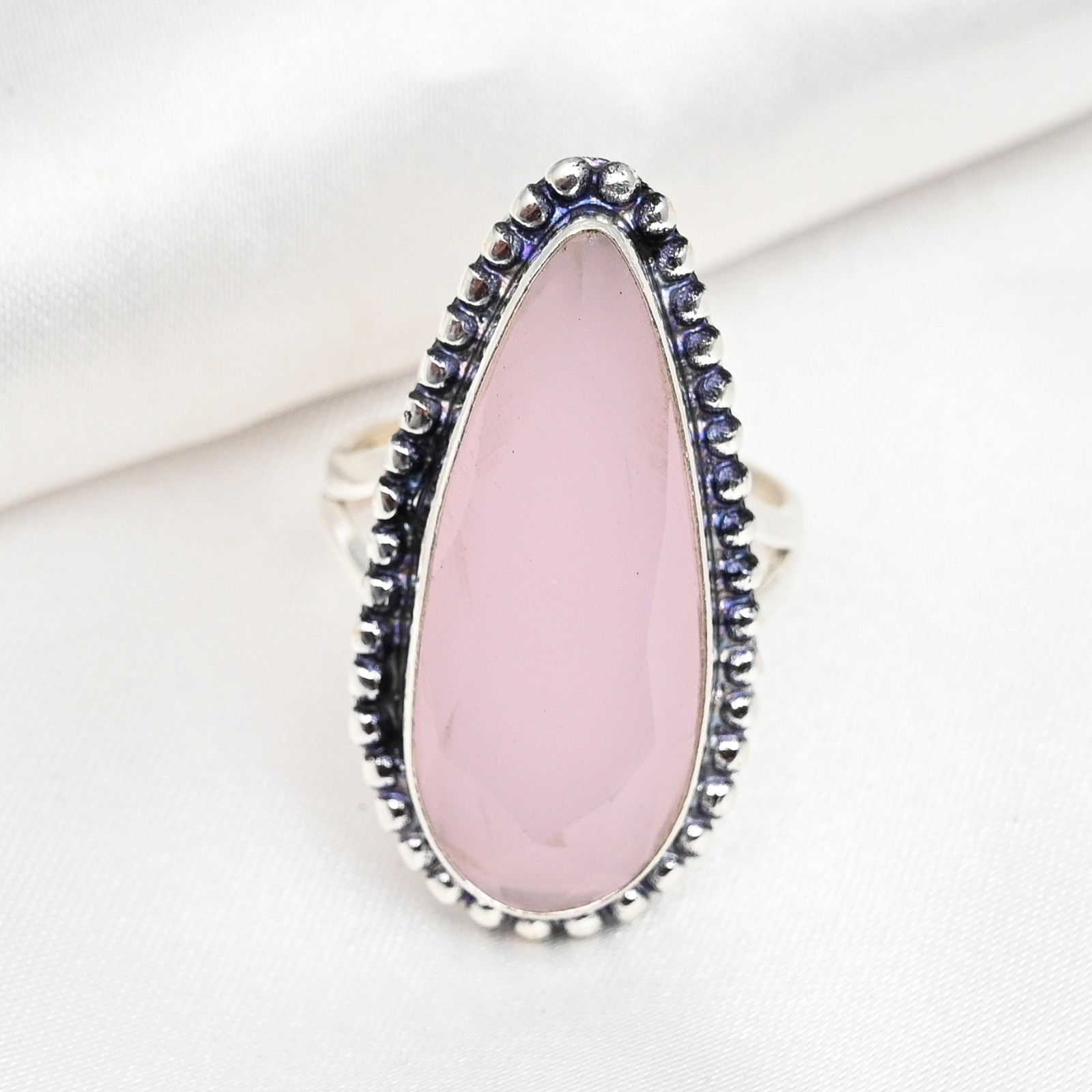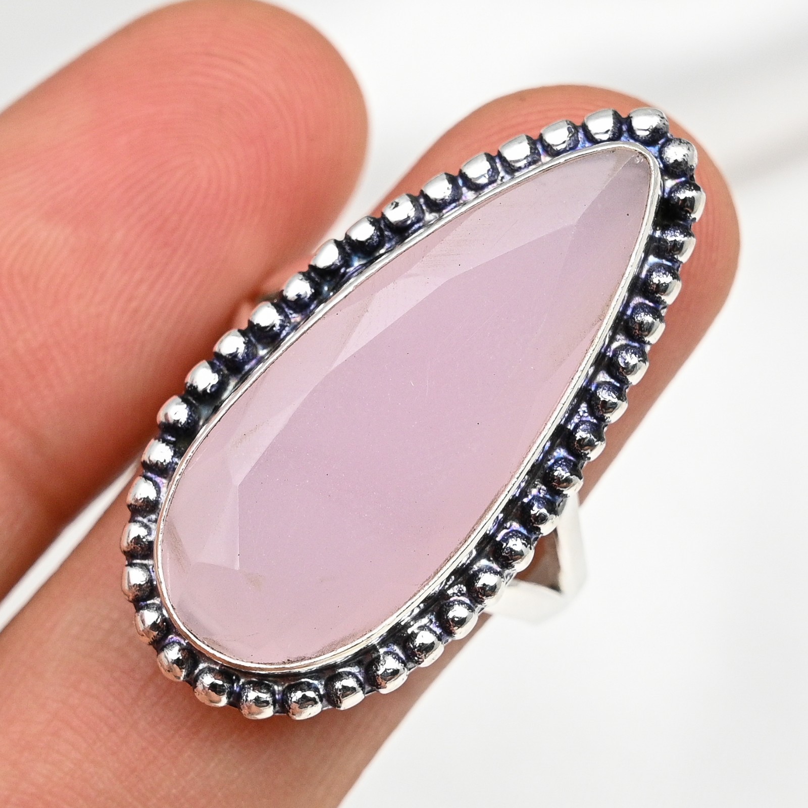 Pink Chalcedony Gemstone Handmade 925 Sterling Silver Women's Ring Jewelry