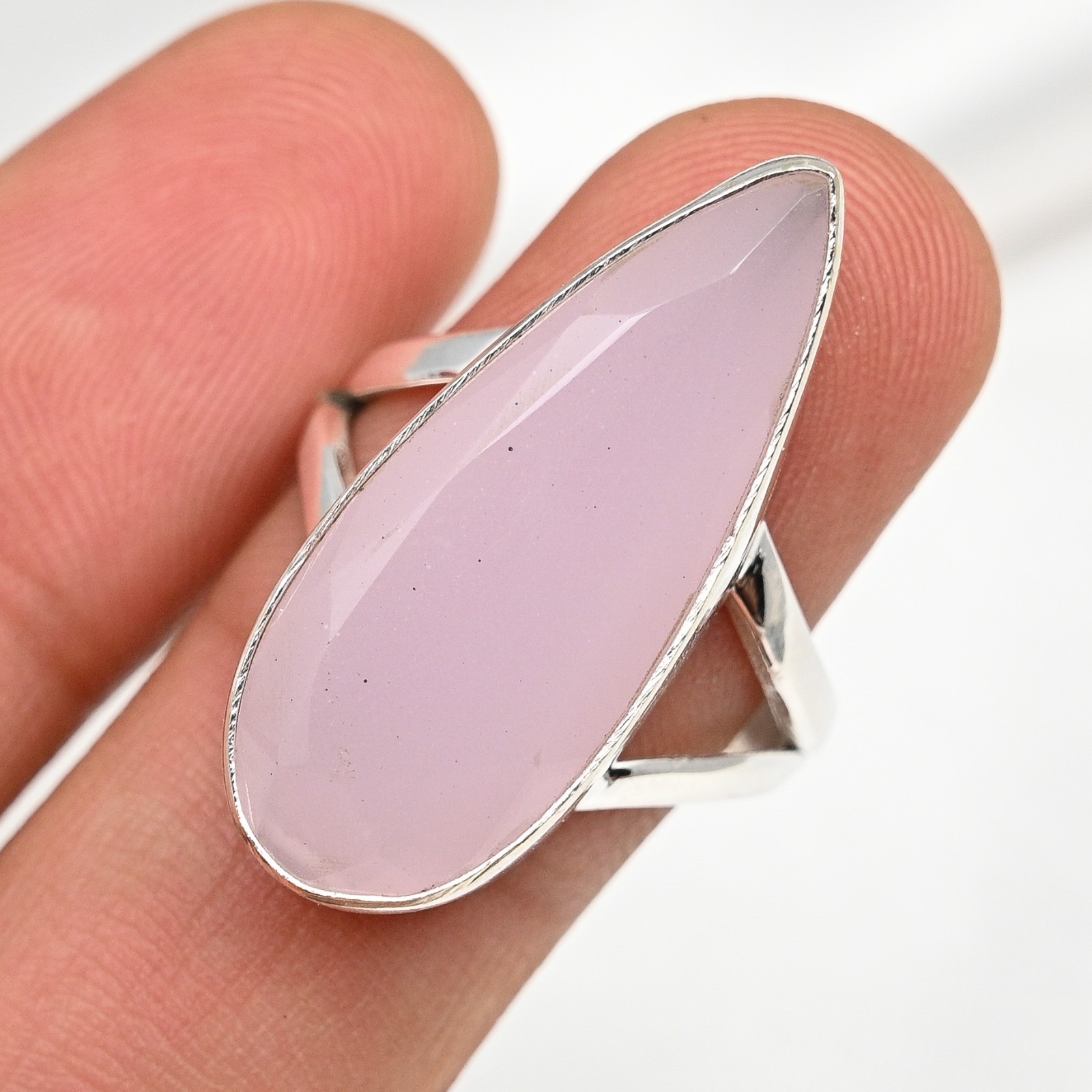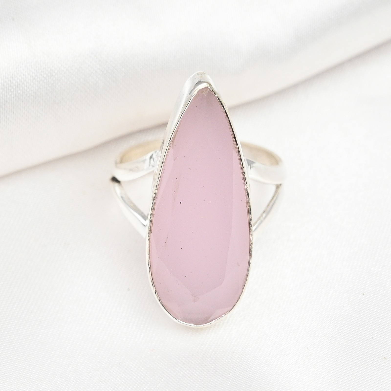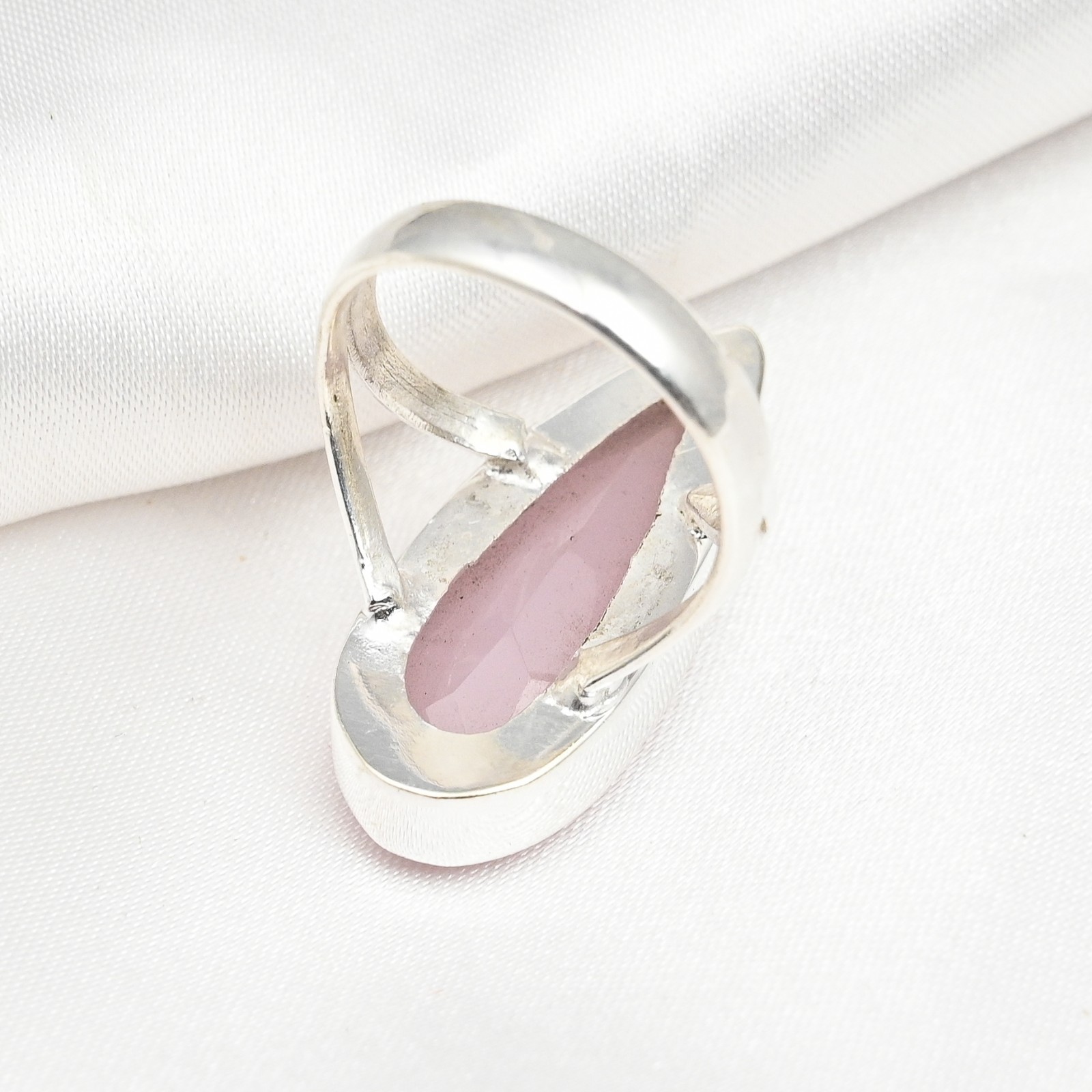 как выглядит Pink Chalcedony Gemstone Handmade 925 Sterling Silver Ring Jewelry For Her фото