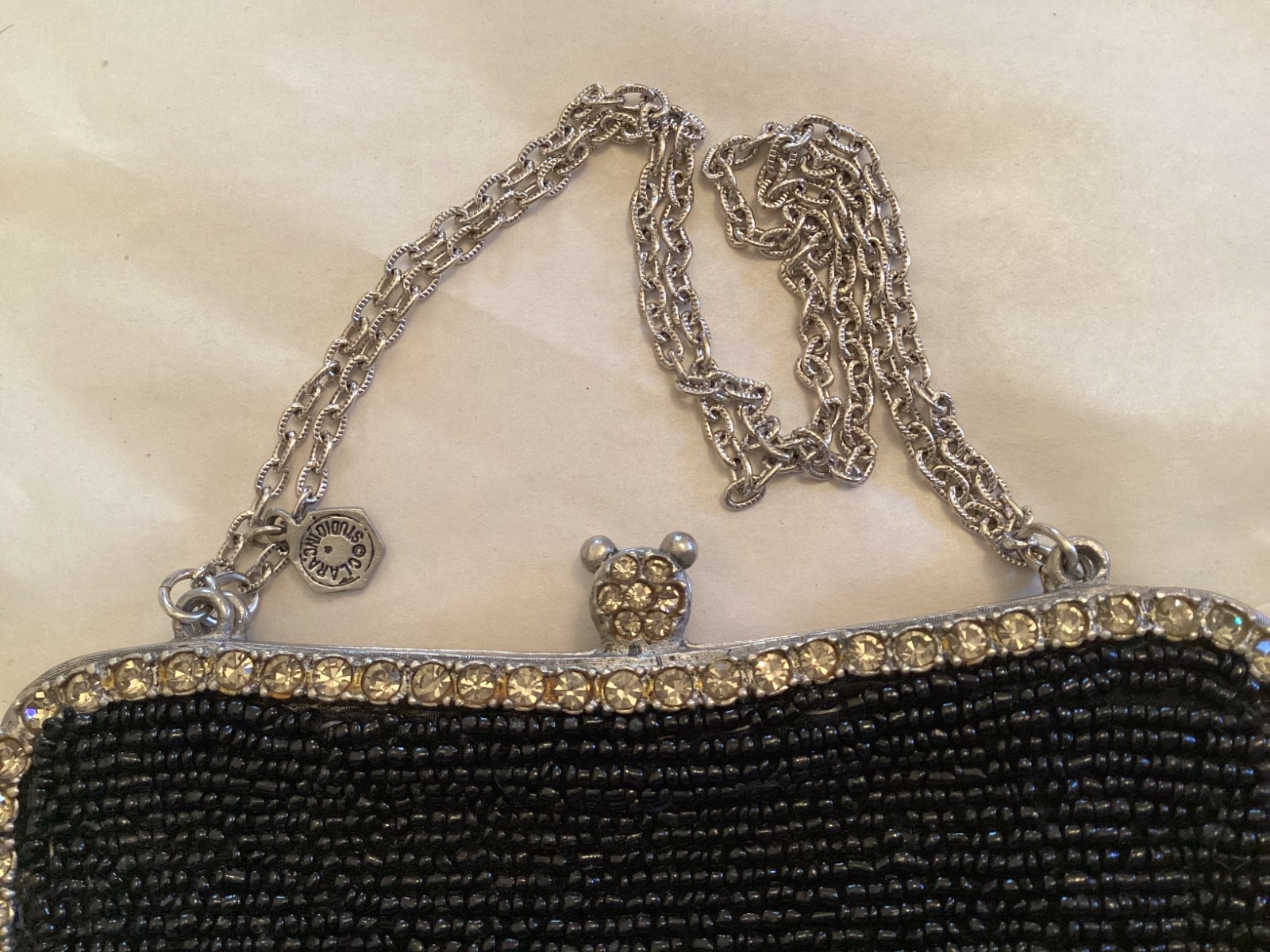 как выглядит Clara Studios by Clara Kasavina Black Beaded Crystal Evening Bag 5.25 X 5  1037 фото