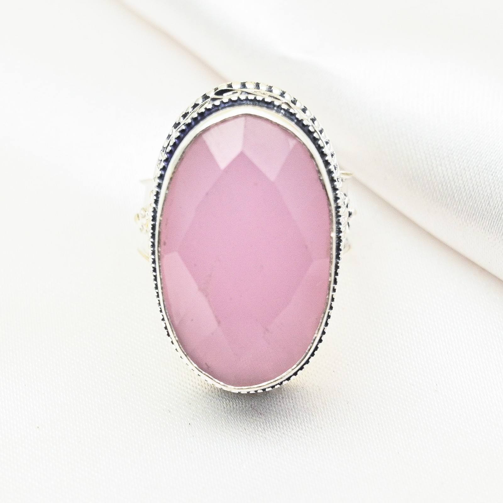 как выглядит Adorable Pink Chalcedony Gemstone Handmade 925 Sterling Silver Ring Jewelry фото