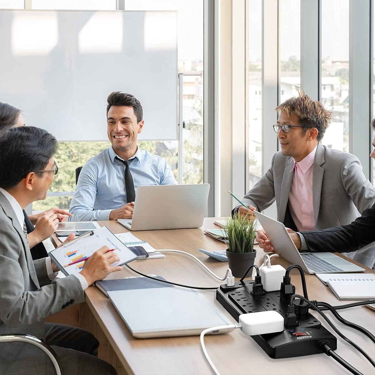 6 Ft Flat Plug Power Strip with 18 Outlets 4 USB Ports - Fireproof Durable
