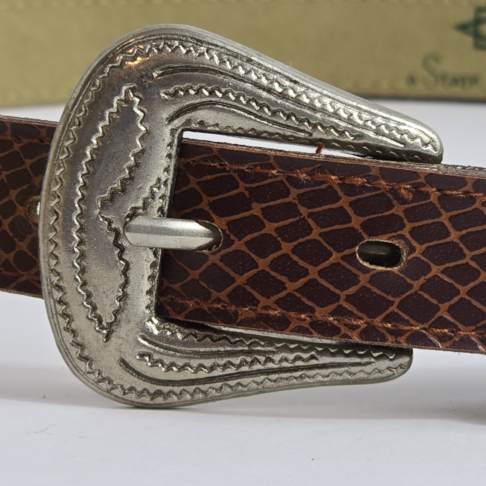 как выглядит State of The Art Womens Size 12 Brown Faux Snake Skin Belt Western Boho Buckle фото