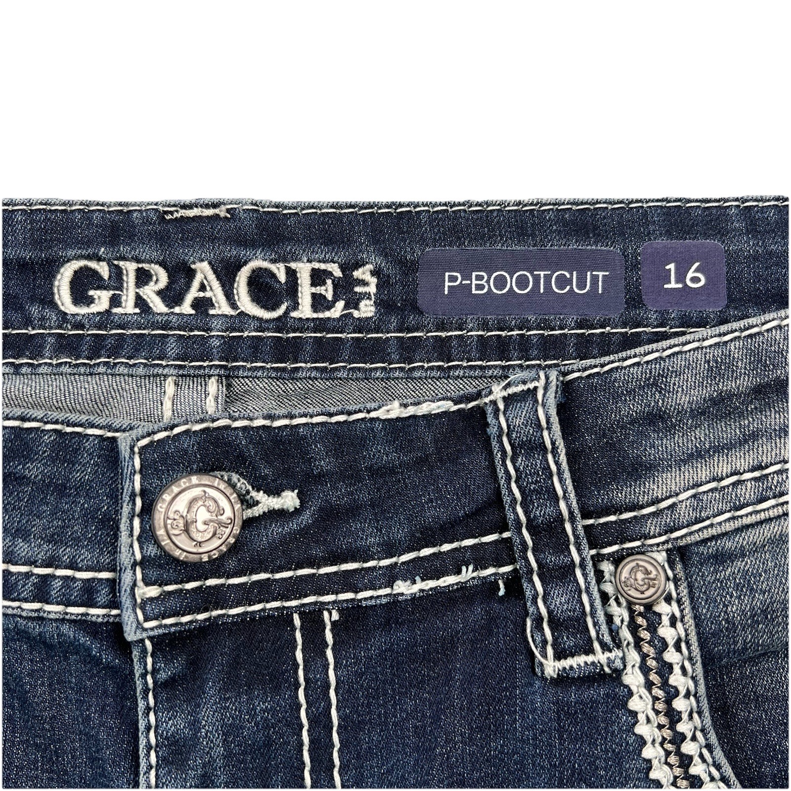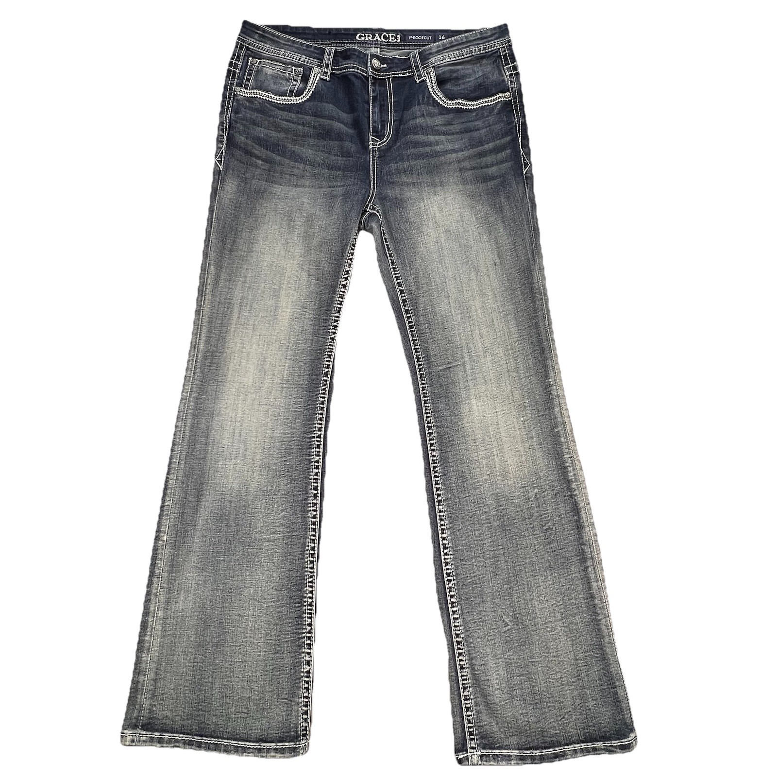 как выглядит Grace in LA P-BOOTCUT Jeans Womens Size 16 Horse Embroidery Western Light Wash фото