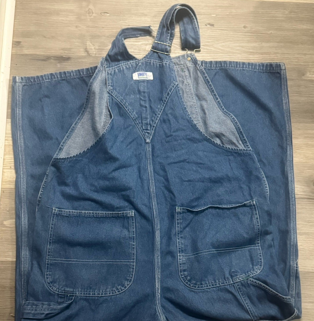 Liberty Overalls Mens 40x32 Bibs Workwear Carpenter Distressed Vintage Denim
