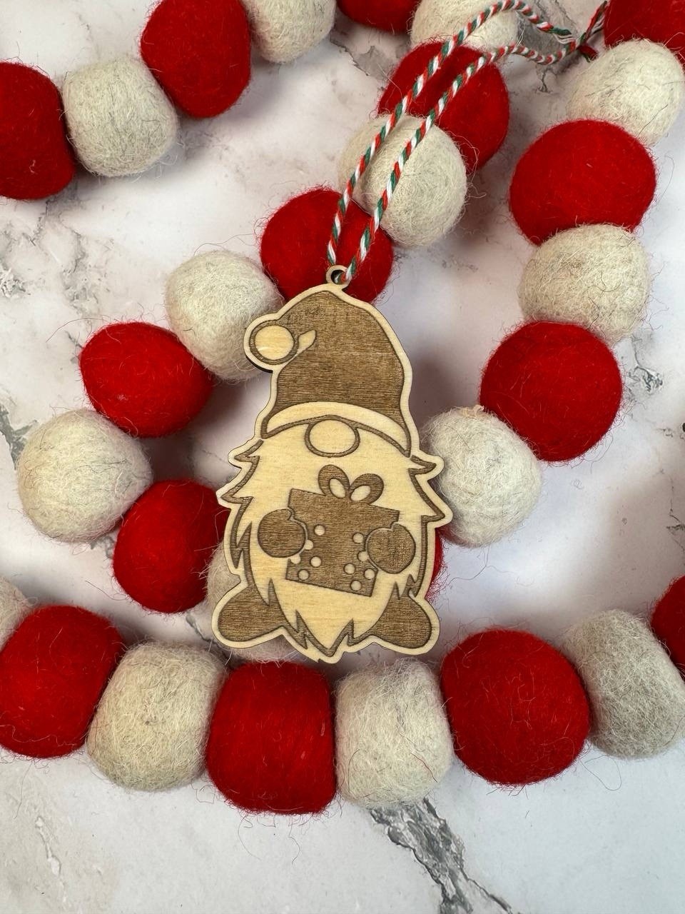 Wooden Christmas Gnome Ornament with Gift Rustic Holiday Tree Decoration