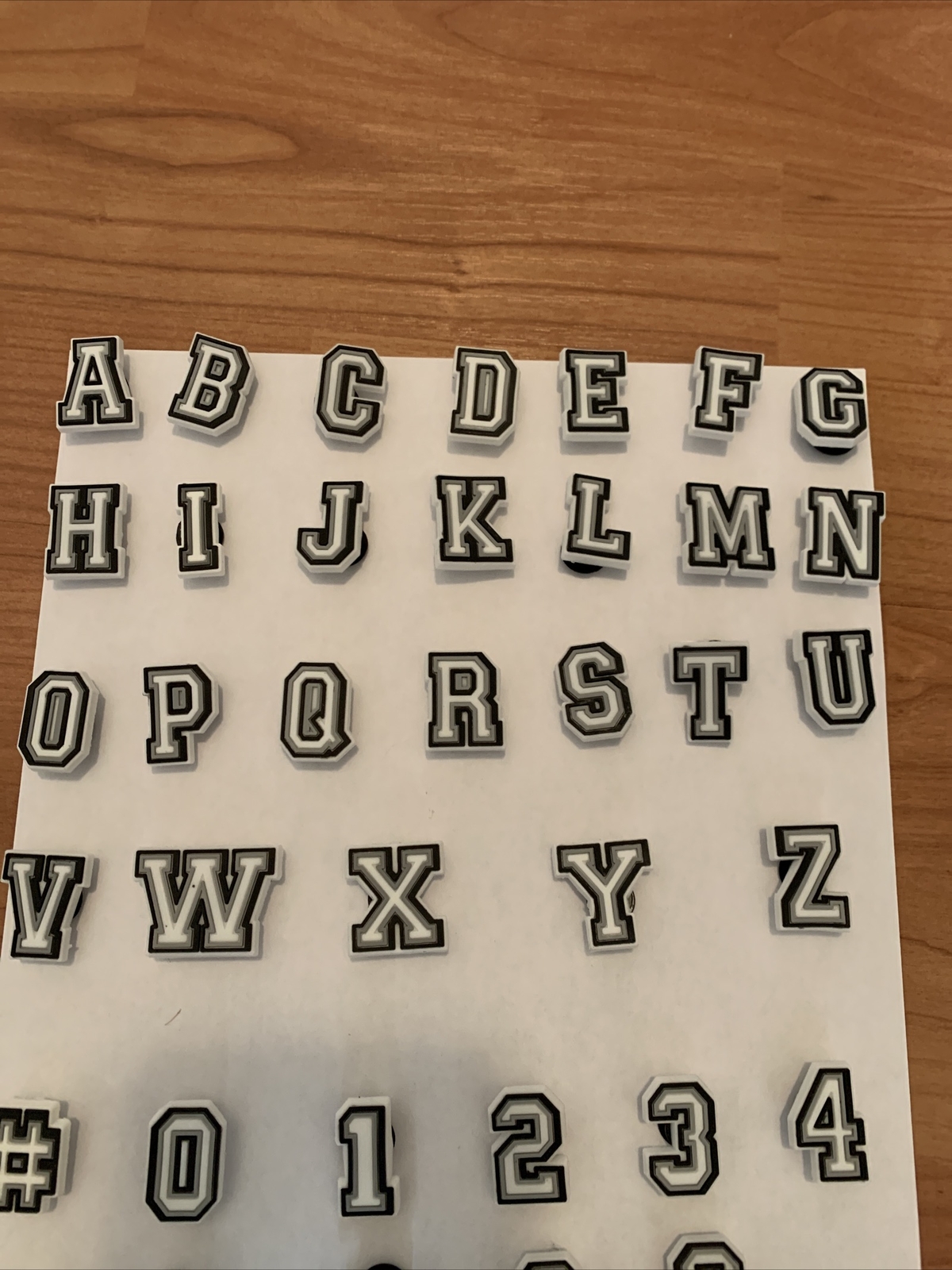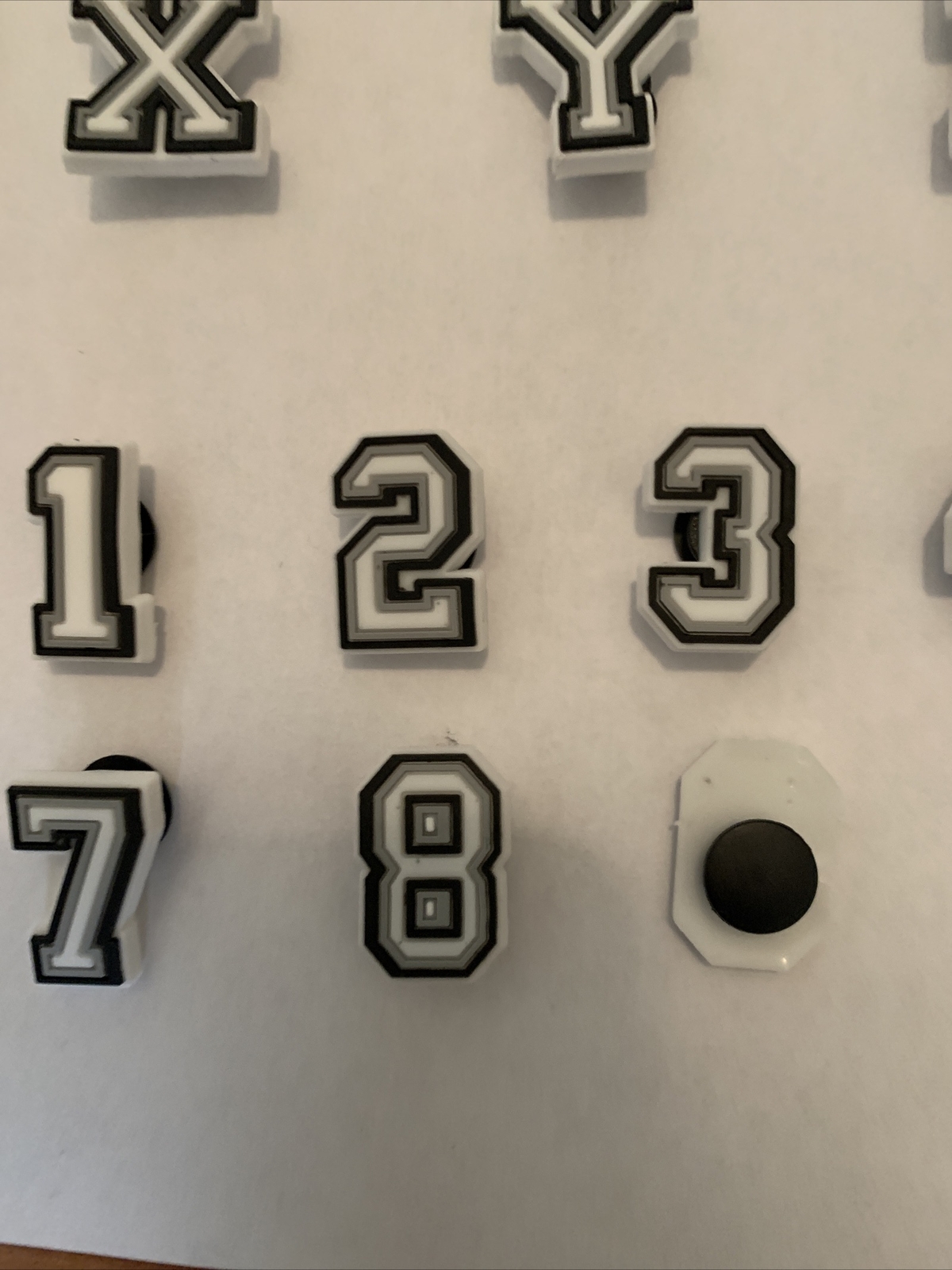 как выглядит ALPHABET, LETTERS, NUMBERS Shoe Charms fits CROCS - you pick Black White фото