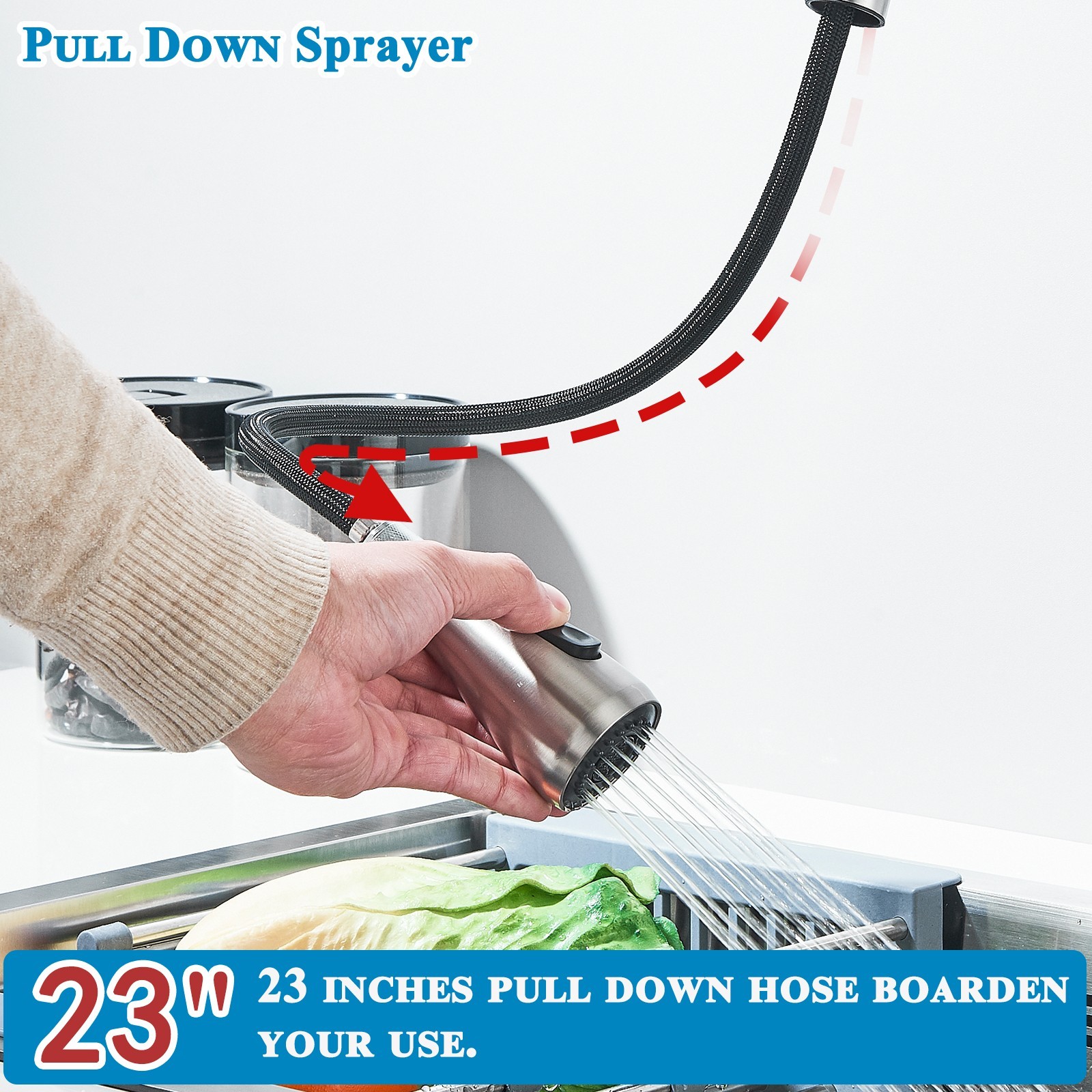 Kitchen Sink Faucet Pull Down Sprayer Stainless steel Single Handle Swivel Mixer