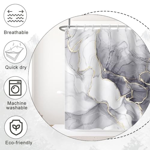 Shower Curtain, Ombre Light Marble Shower Curtain 72W x 72L Pack of 1 Grey