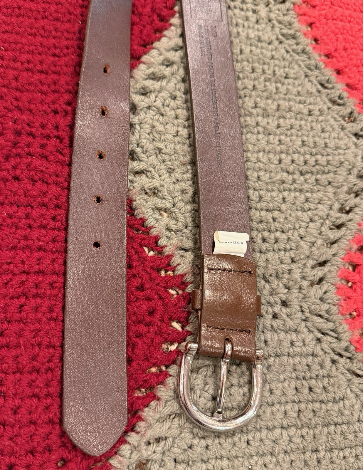 как выглядит Womens GAP Brown Split Leather Belt Silver Tone Hardware Size L Made in USA фото