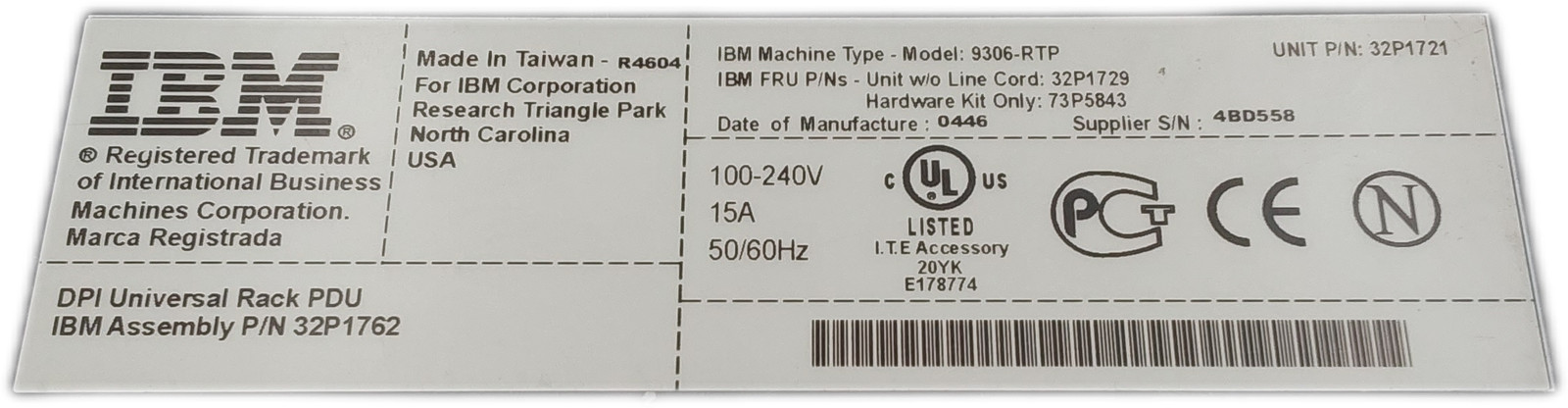 Модель: IBM 9306-RTP DPI Universal Rack Assembly PDU P/N: 32P1762