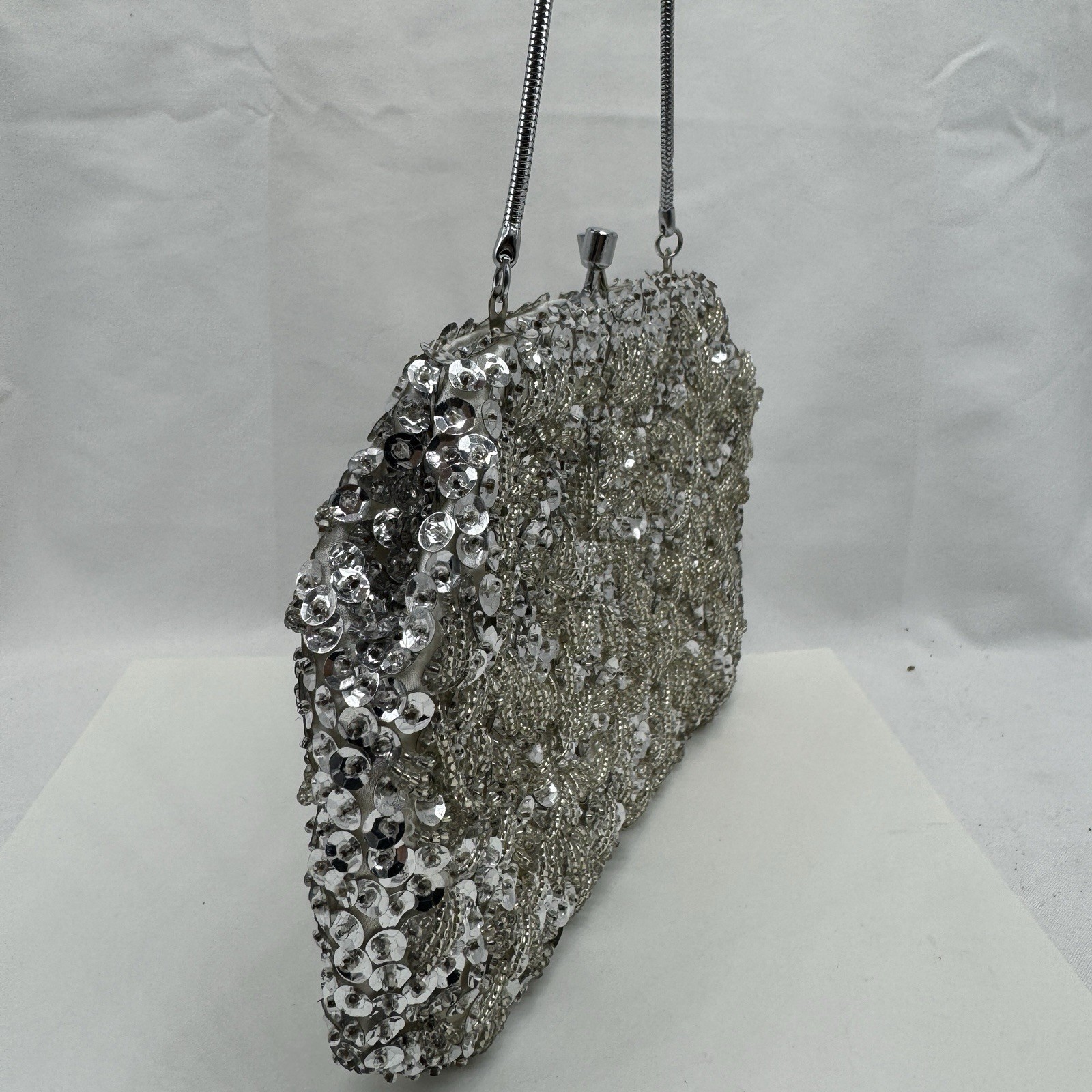 как выглядит Silver Luminescent Beaded Sequin Clutch Evening Bag Hand Made in Hong Kong фото
