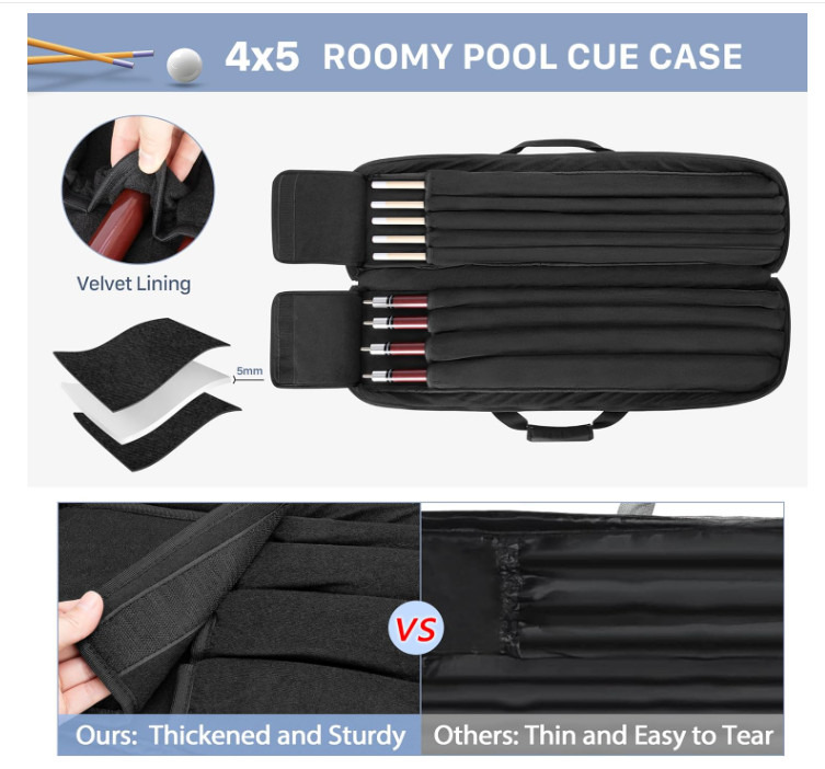 4X5 Pool Cue Case, Billiard Stick Carrying Case Holds 4 Butts and 5 Shafts