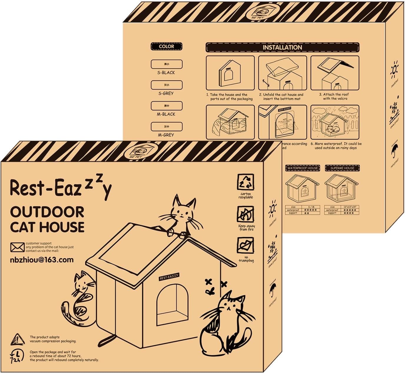 Compact Self-Warming Outdoor Cat Shelter with Waterproof Mat - Easy to Assemble