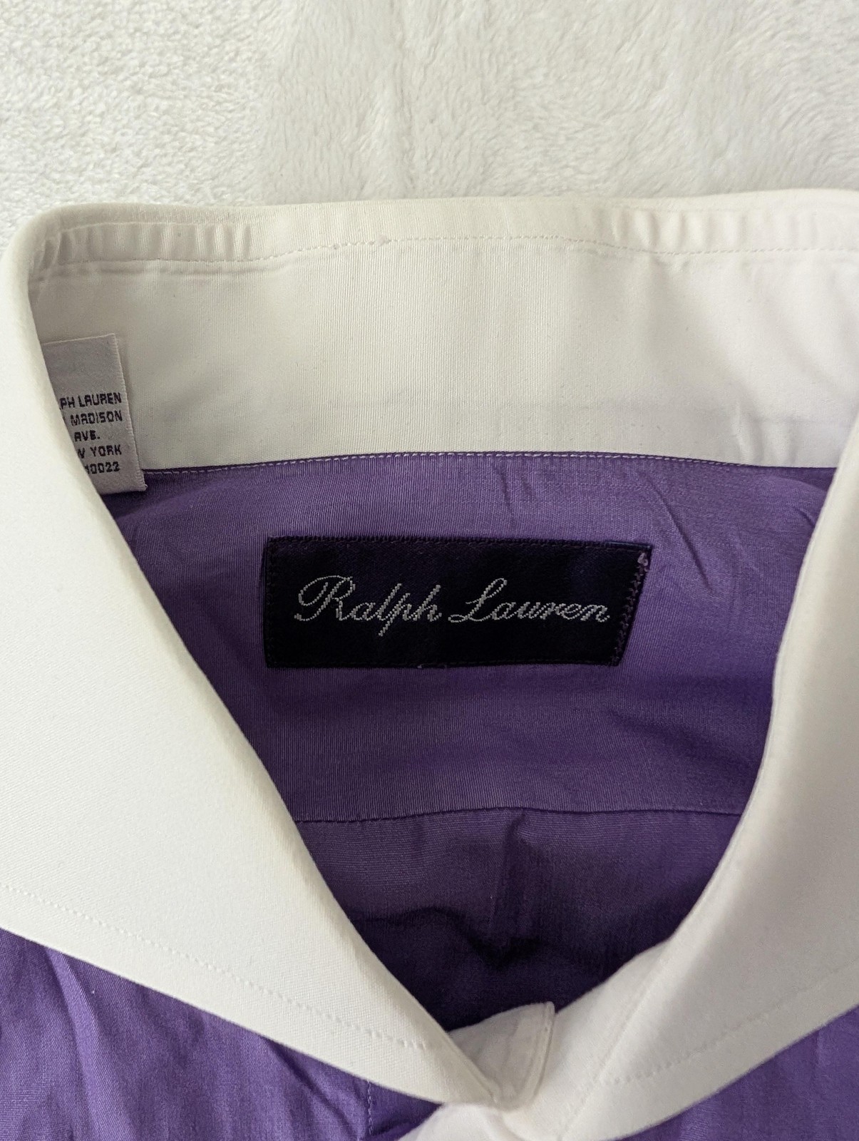 как выглядит Ralph Lauren Purple Label Dress Shirt Mens 15.5 Purple French Cuff Made In Italy фото