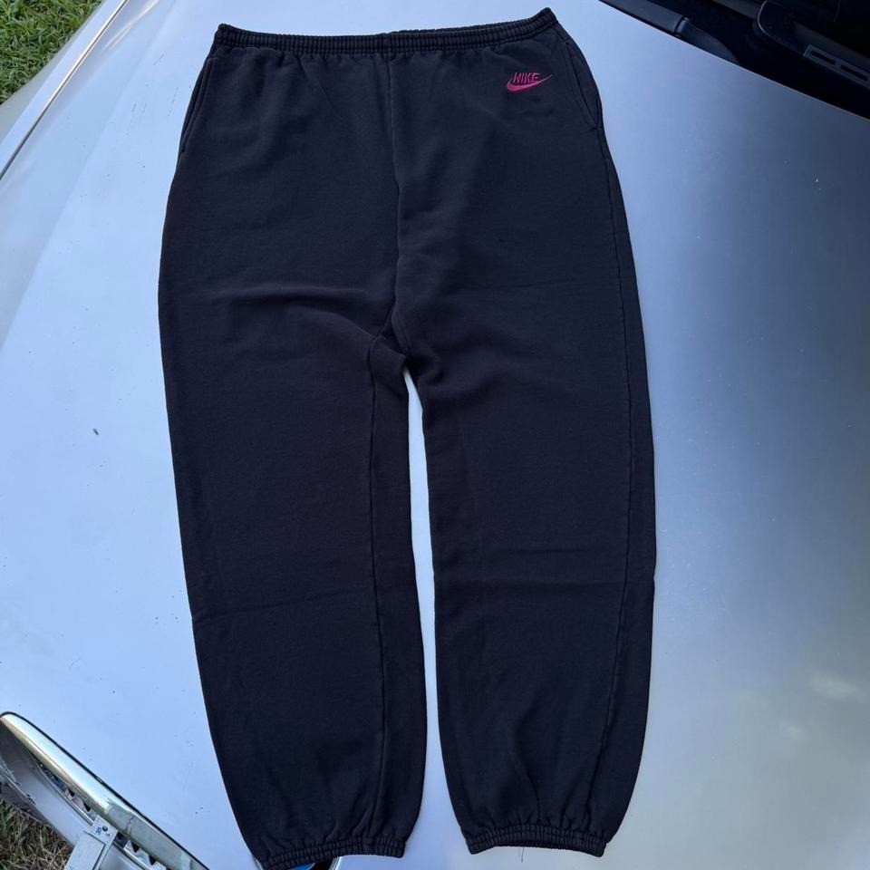 как выглядит Vintage early 90s made in USA Black Nike sweatpants with pink embroidered logo фото