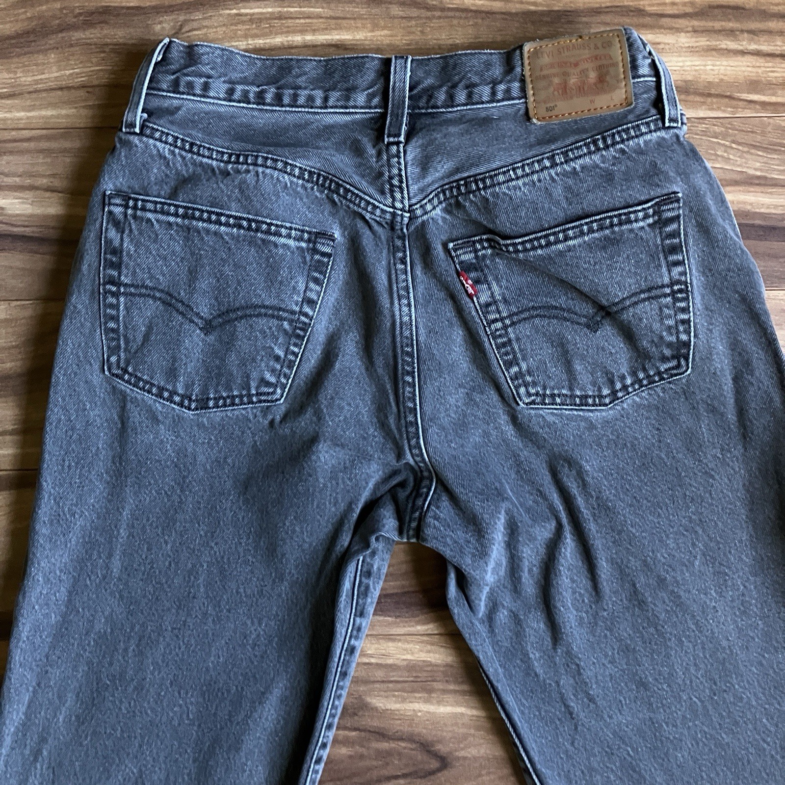 как выглядит Levis 501 Jeans Womens 29x30 Gray Straight Leg Button Fly Cotton Denim Pants фото