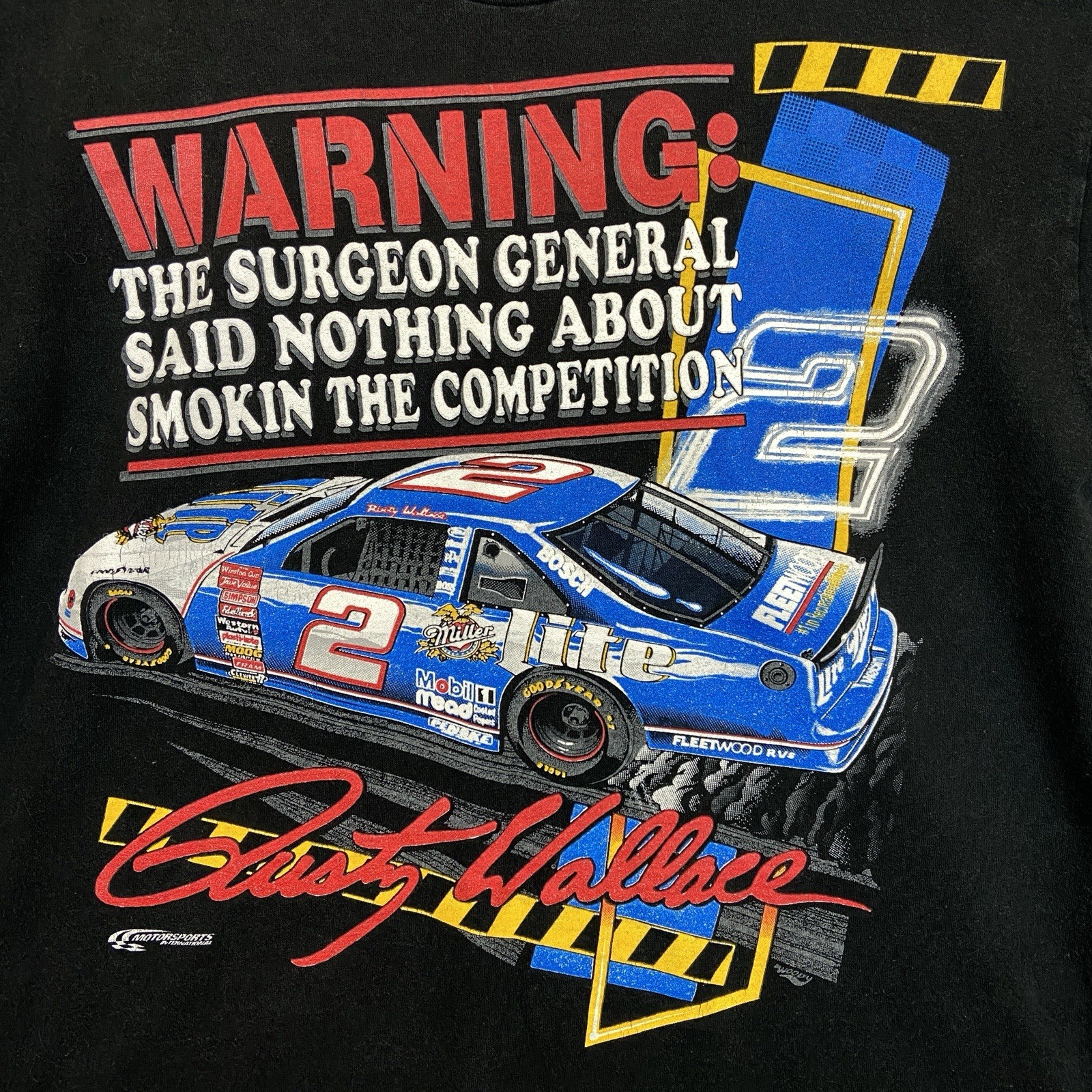Vintage 90s NASCAR Rusty Wallace 2 Miller Lite Graphic T Shirt Size XL Racing