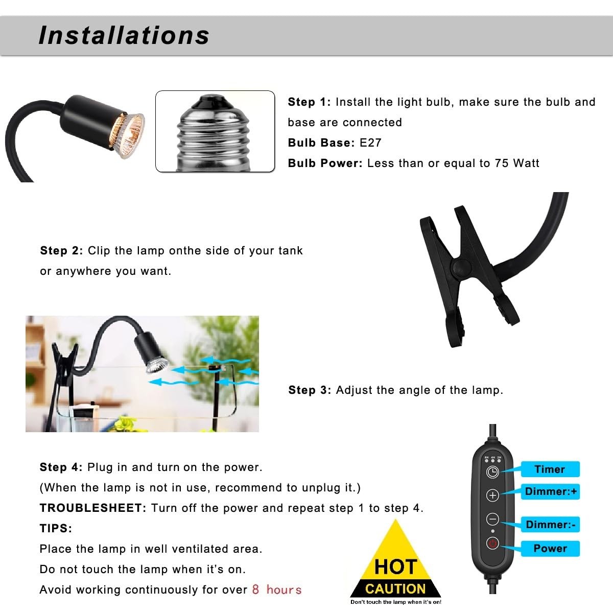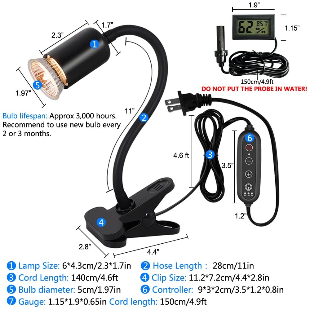 Dimmable Reptile Heat Lamp with Timer 75W UVA UVB Light Bulb, Basking Spot ...