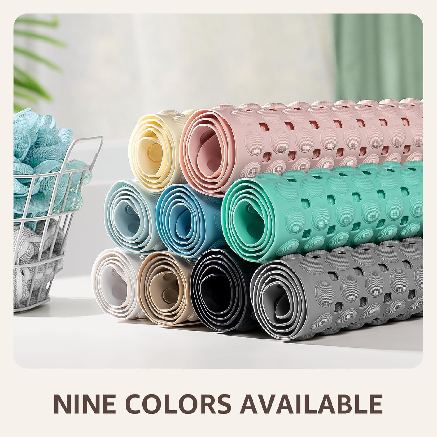 Bathtub Mat Non Slip 35x16 Shower Mat with Suction Cups Drain Holes, Grey