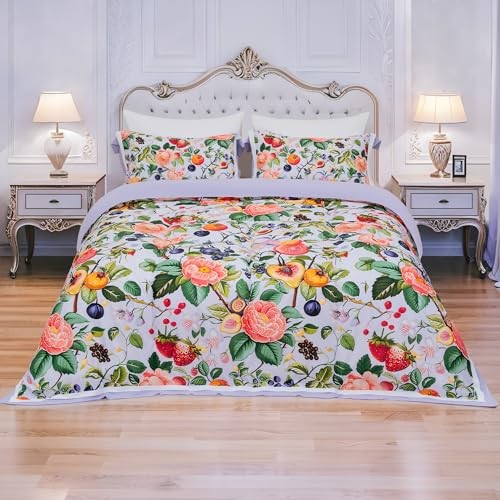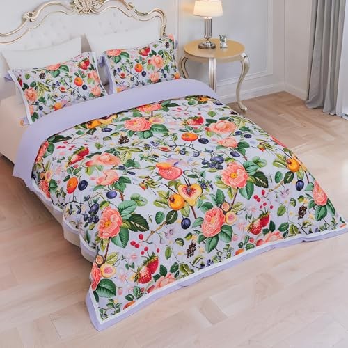 Fruit Floral Duvet Cover Set Size - 3PC White Botanical Bedding in Queen P16