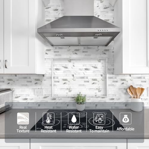 Sheets Peel and Stick Stone Metal Tile Backsplash, Stick 10 Marble White Metal