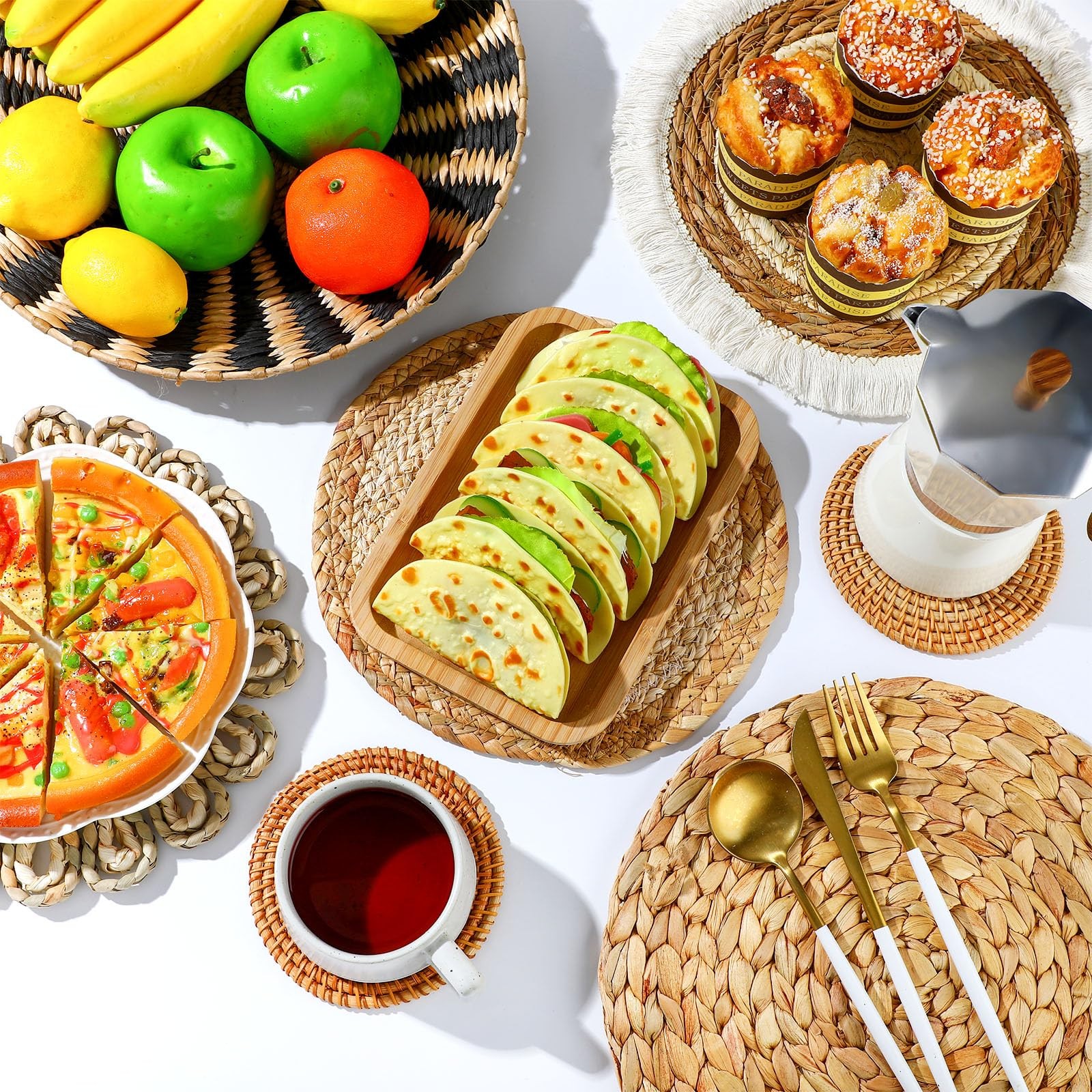 как выглядит 11 Pcs Boho Hanging Wall Basket Decor Handmade Woven Basket Wall Decorative B... фото