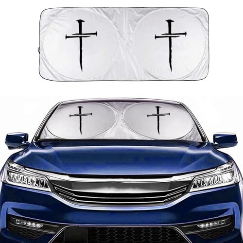 Car Windshield Sun Shade Compatible with Cross of Nails, Christian white-szj