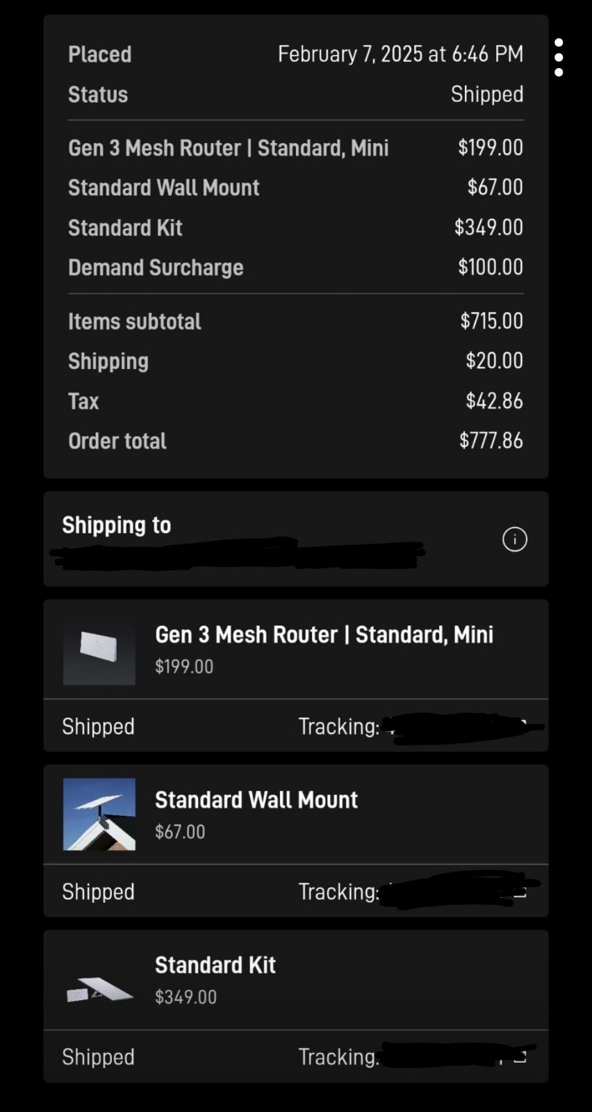 Starlink Satellite Standard Kit With Wall Mount And Gen 3 Mesh Router