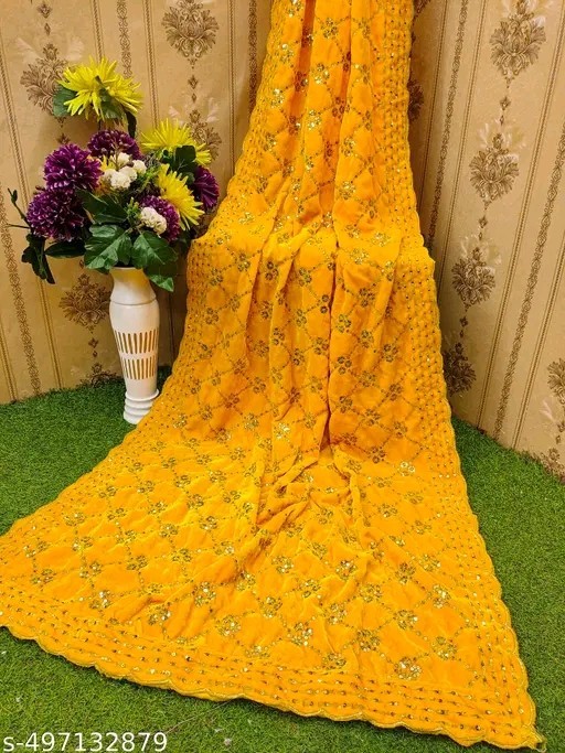 Yellow Embroidery Velvet Dupatta For Bride And Women Velvet Shawl Odhani Veil