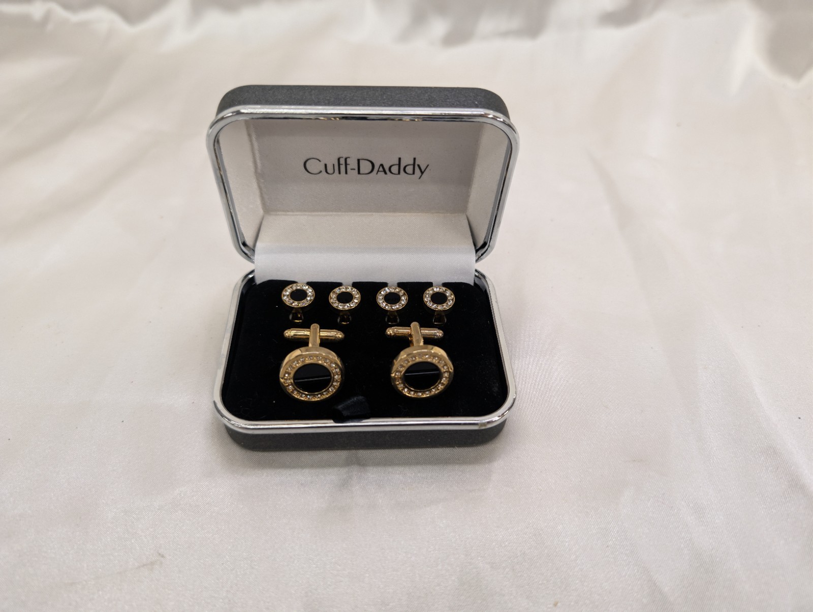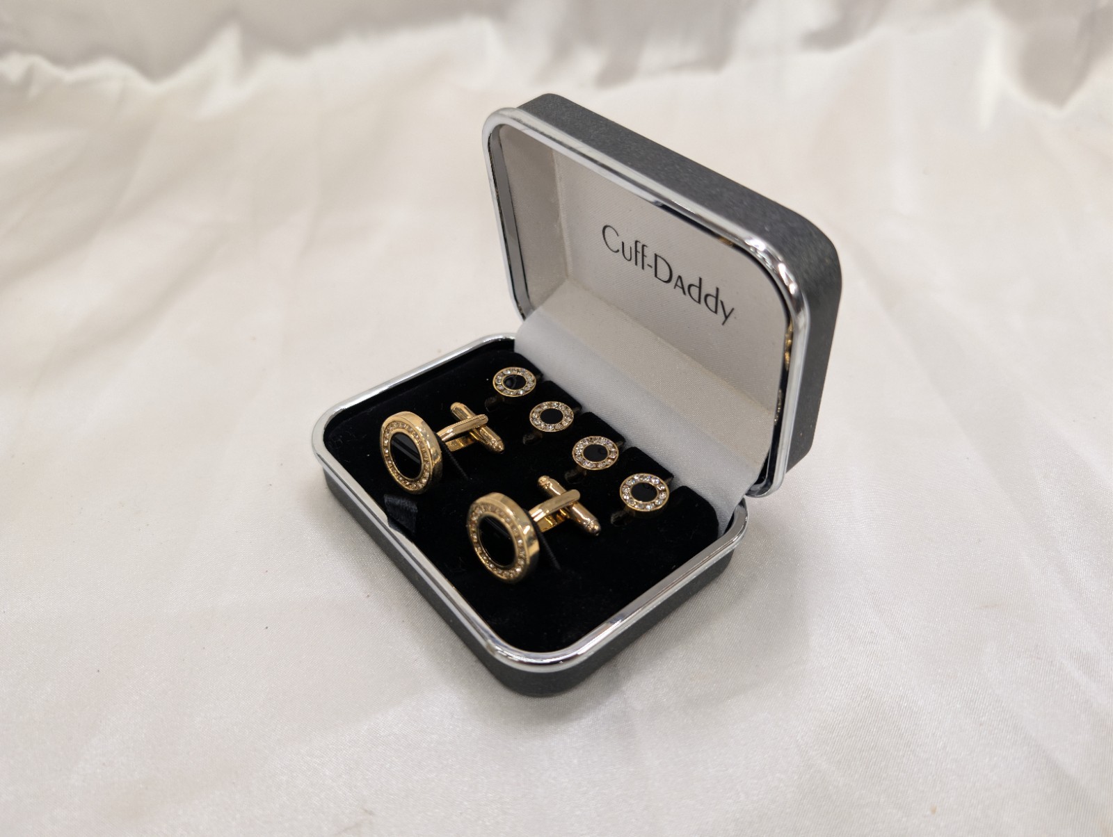 как выглядит Cuff-Daddy cufflink and stud set gold tone фото