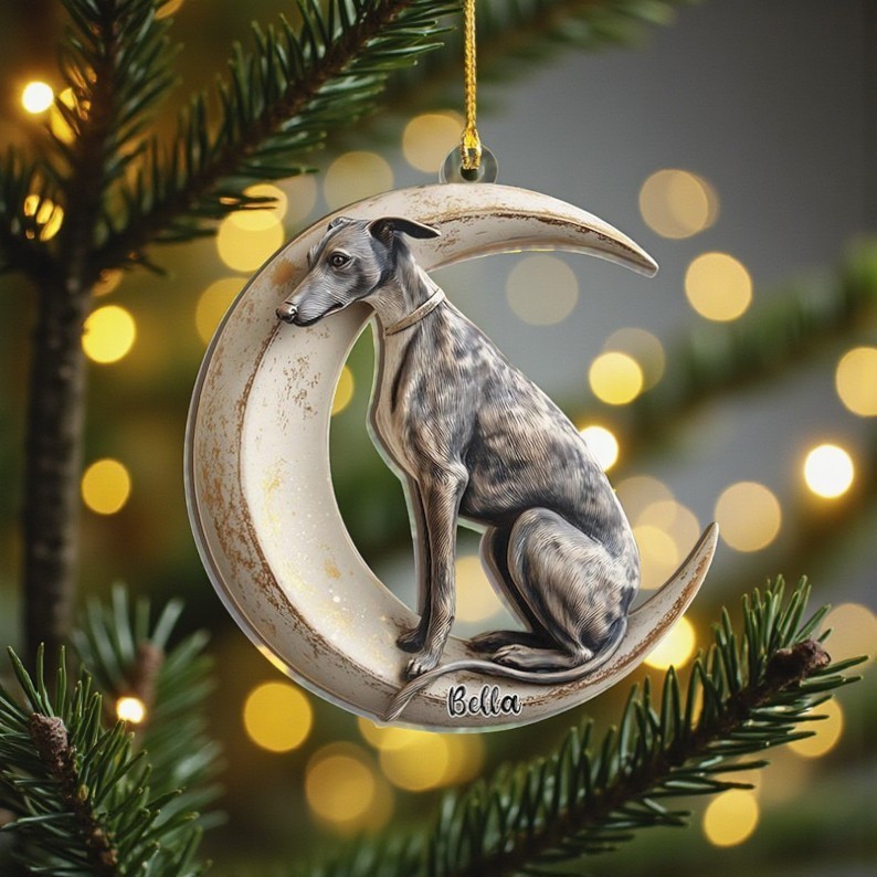 Personalized Whippet Dog Moon Ornament Greyhound Christmas Tree Decor Gift