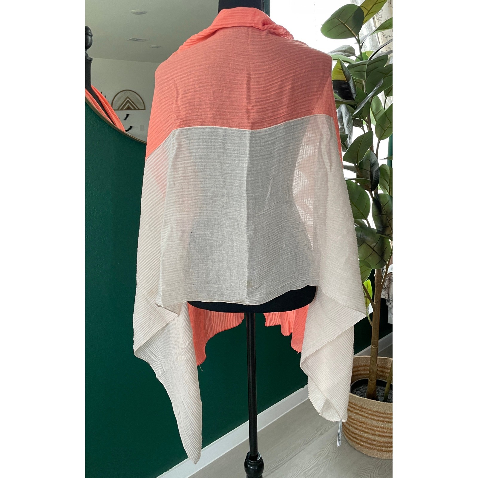 Lightweight Pleated Scarf Coral Cream Textured Coastal Boho Wrap Festival Shawl