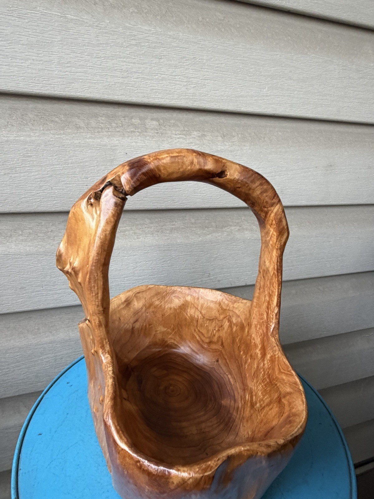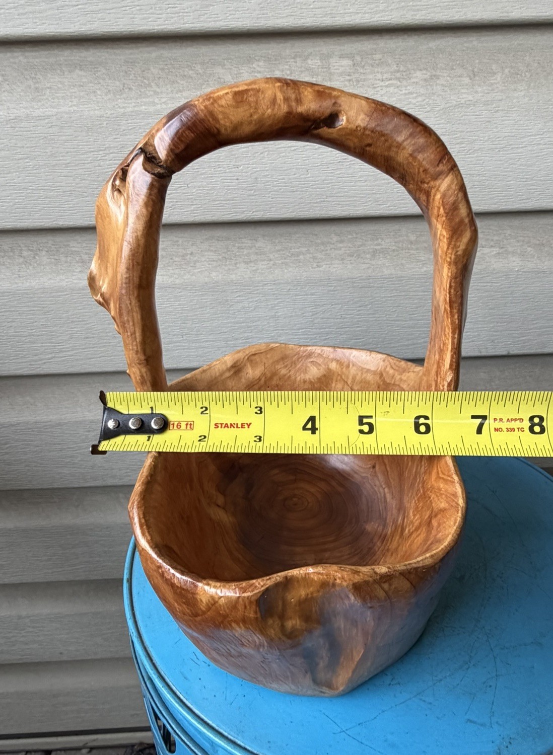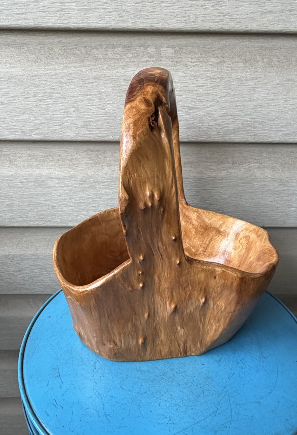 как выглядит Burl Wood Free Form Hand Carved Primitive Folk Art Basket Bowl 10 Marked AF фото