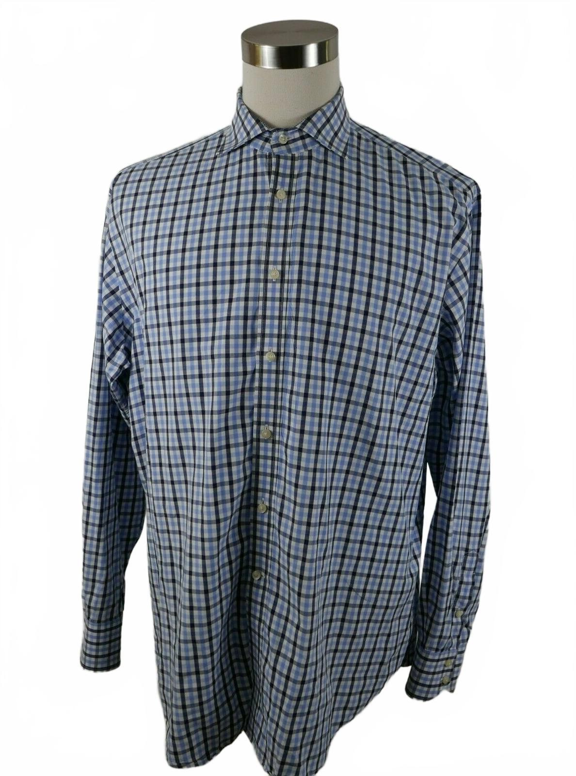 Jack Stone Thomas Dean Mens Button Up Two Tone Blue Plaid Shirt No Tag XL
