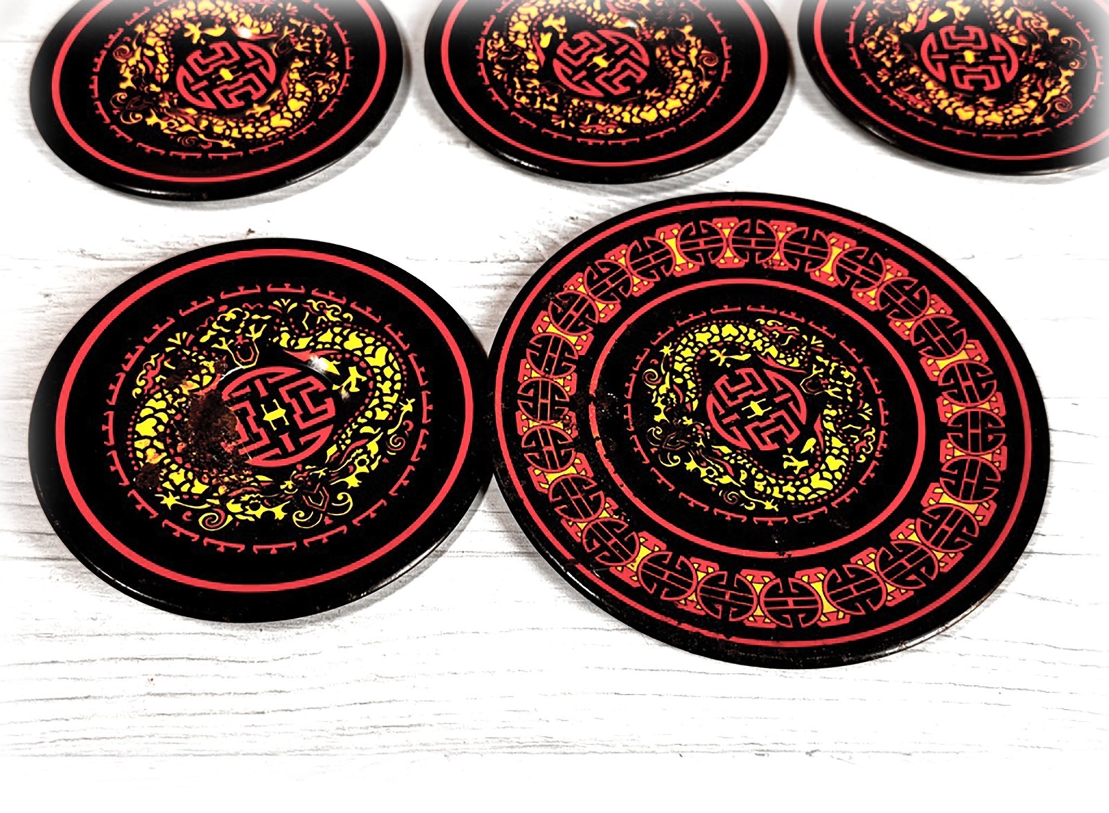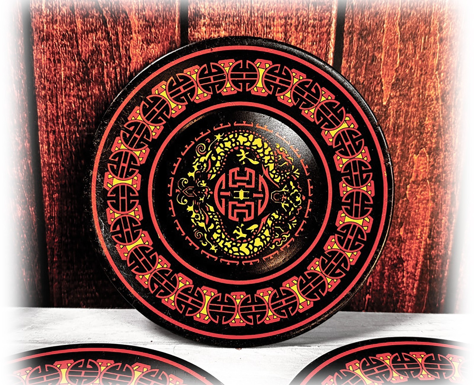 VTG 1960s MCM Tin Asian Design Plates 2 Sizes Children's Play Kitchen Toys