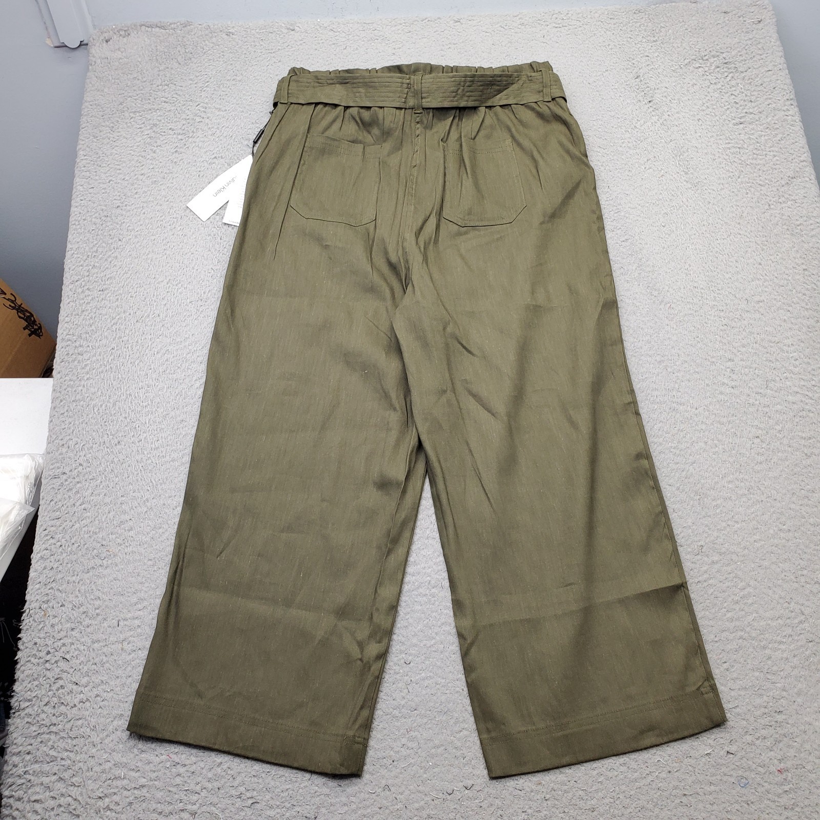 как выглядит Calvin Klein Pants Womens Large Green Linen Blend Tie Waist Wide-Leg Trouser фото
