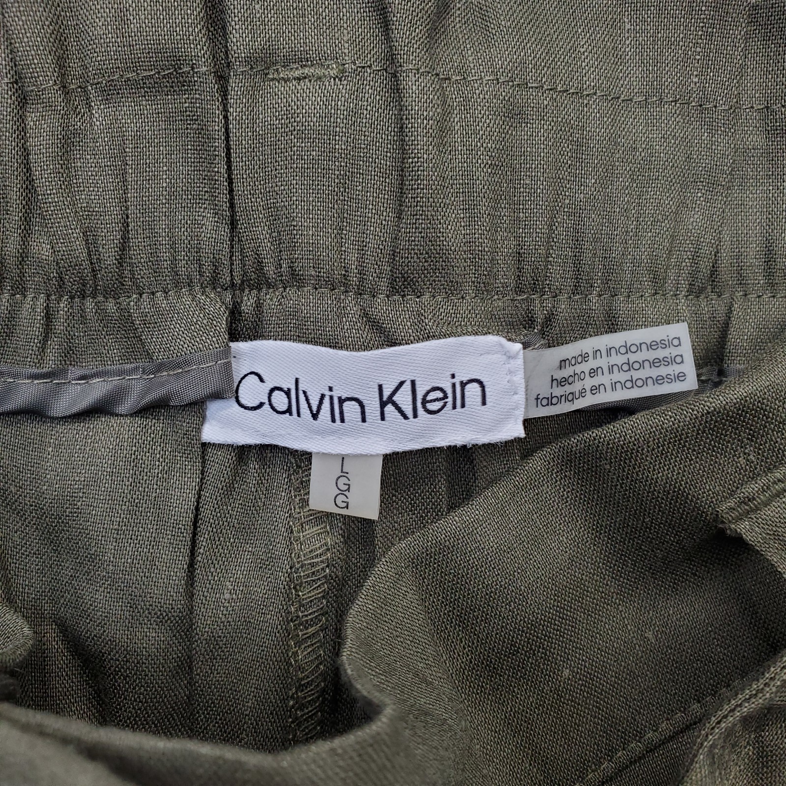 Calvin Klein Pants Womens Large Green Linen Blend Tie Waist Wide-Leg Trouser