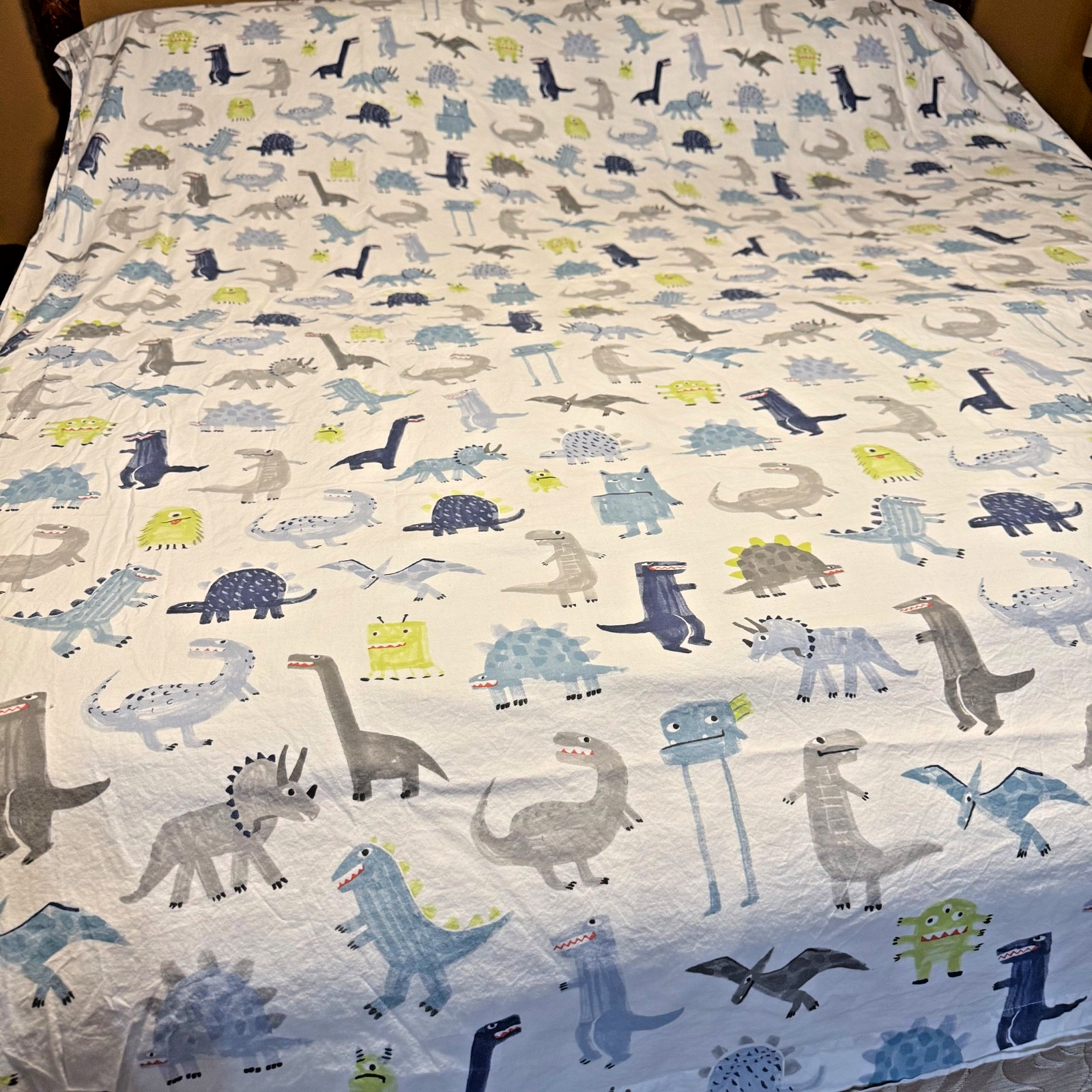 как выглядит Pottery Barn Kids Maverick Dinosaur Full Flat Sheet 100 Org Cotton фото