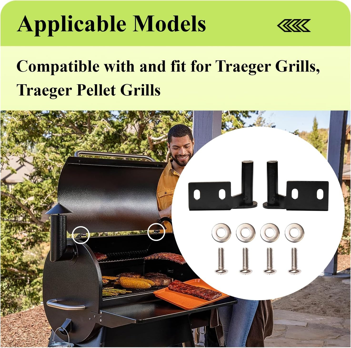 как выглядит 74050 74051 Grills Lid Hinge Kit Compatible with Traeger Grills, Traeger Pelle фото