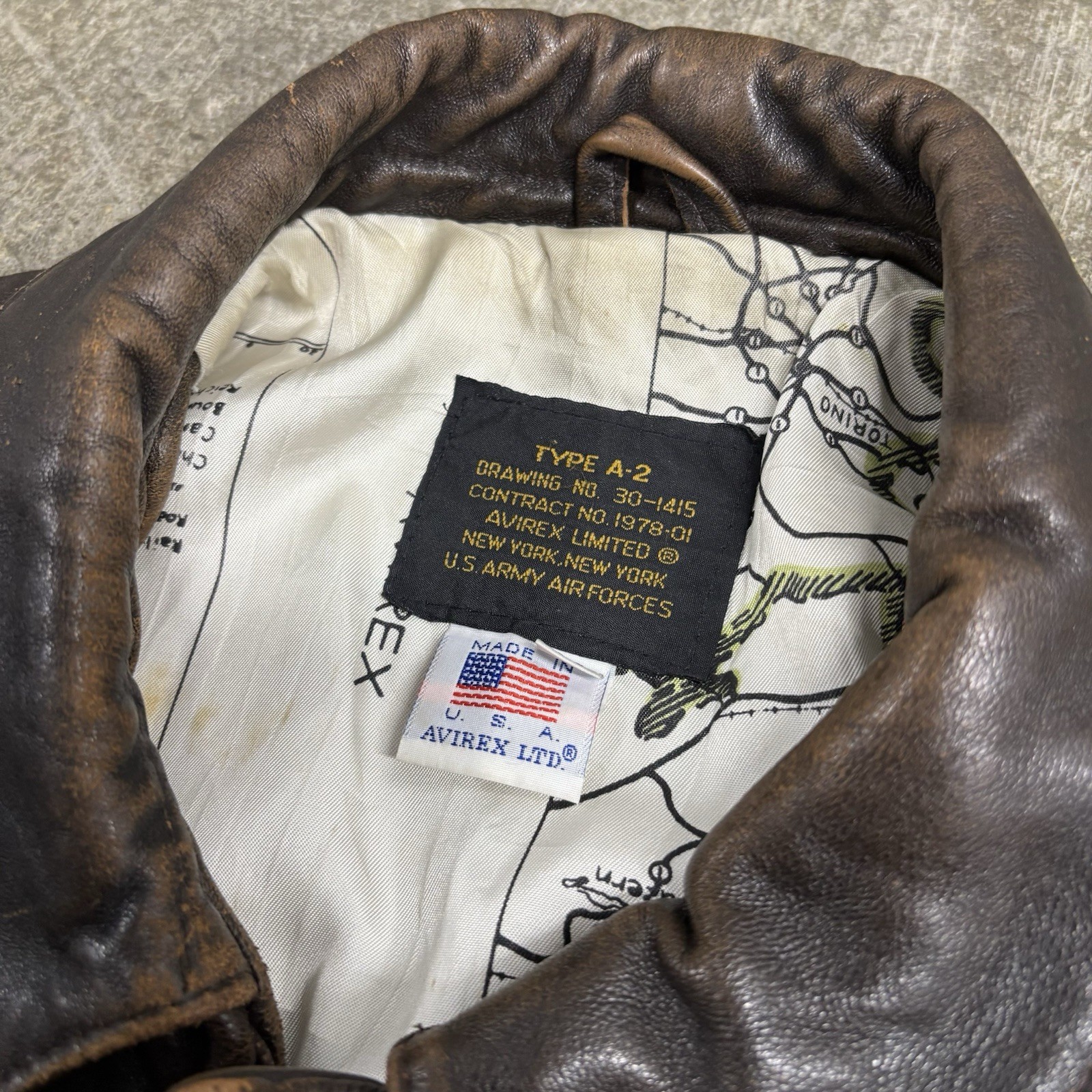 1980s Vintage Avirex Leather Flight Jacket Type A-2 Great Patina Size Medium