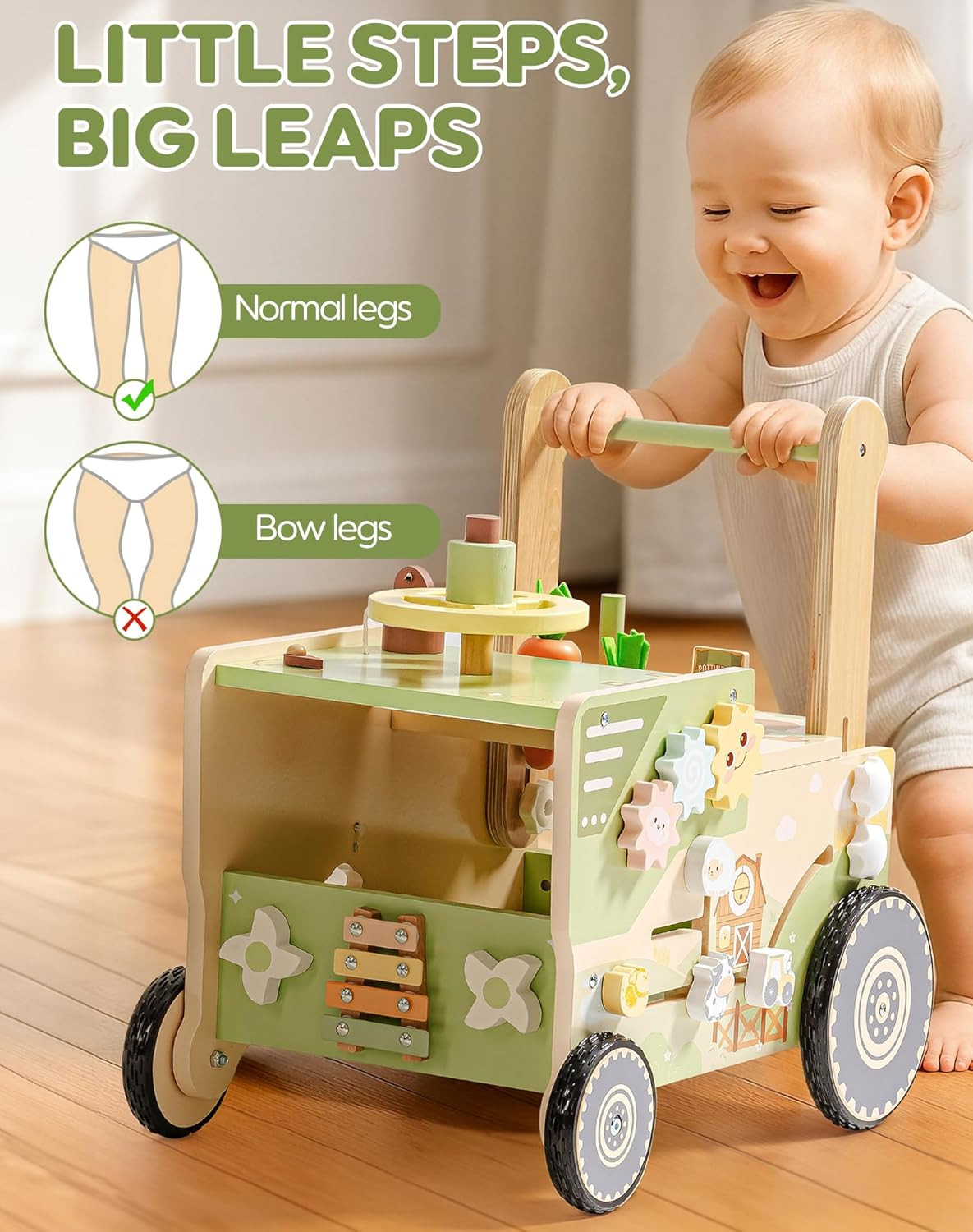 Wooden Baby Walker Push Toy for Toddlers, Baby Push Walker with Wheels, Farm-The