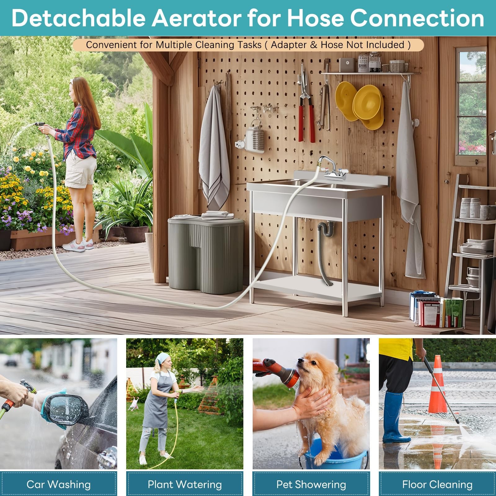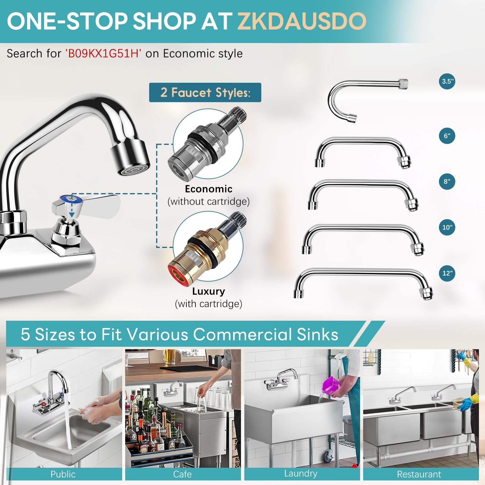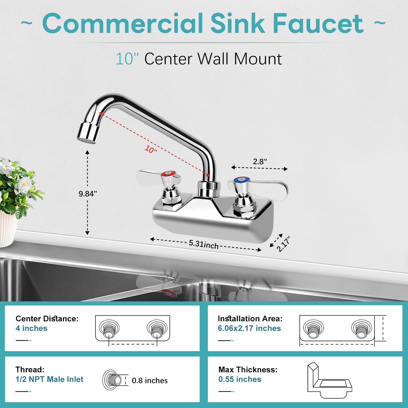 Leak-Free Commercial Kitchen Sink Faucet 4 Center with 10 Swivel Spout, Bar...