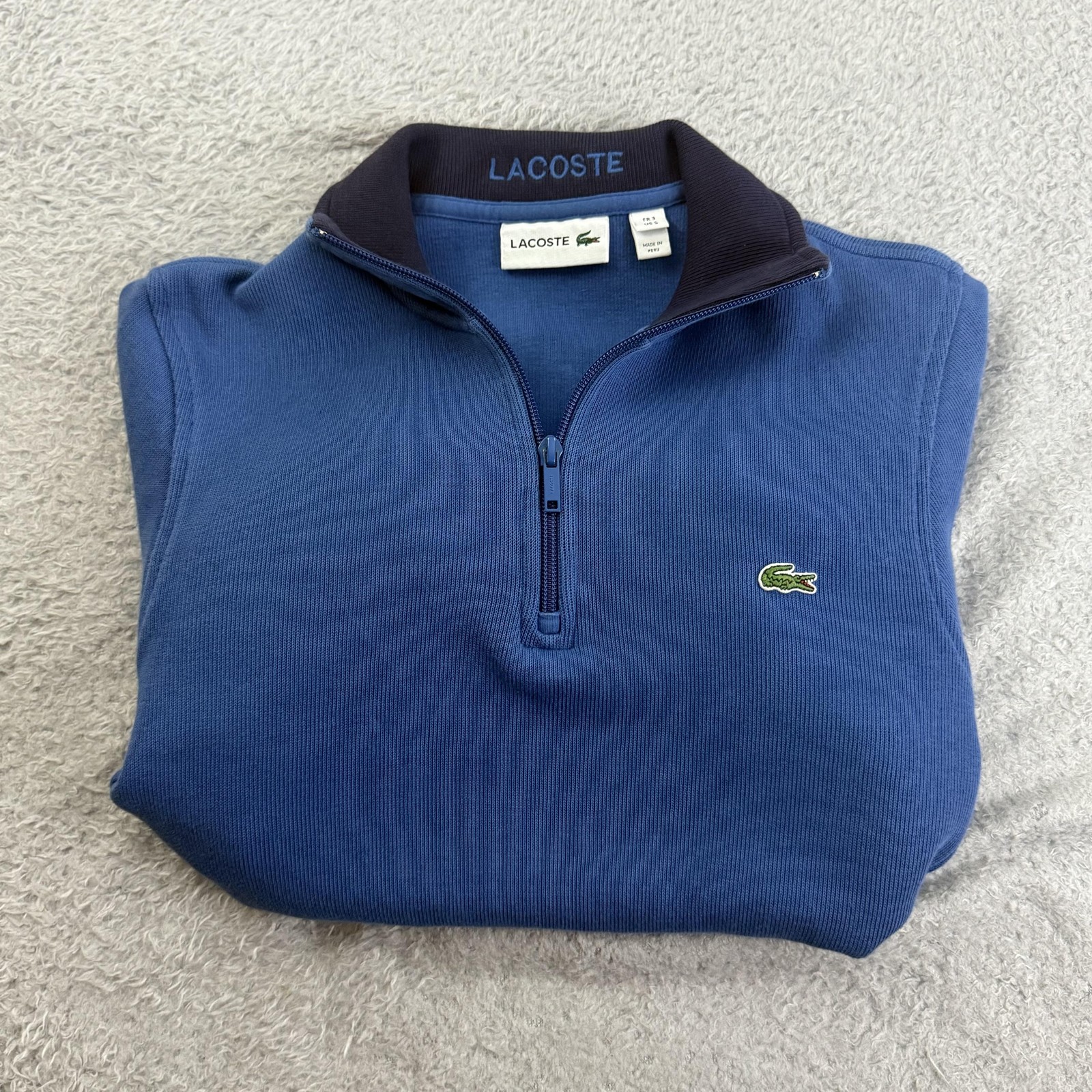 Lacoste Sweater Men Small Blue 1/4 Zip Croc Logo Classic Prep Minimalist Pockets