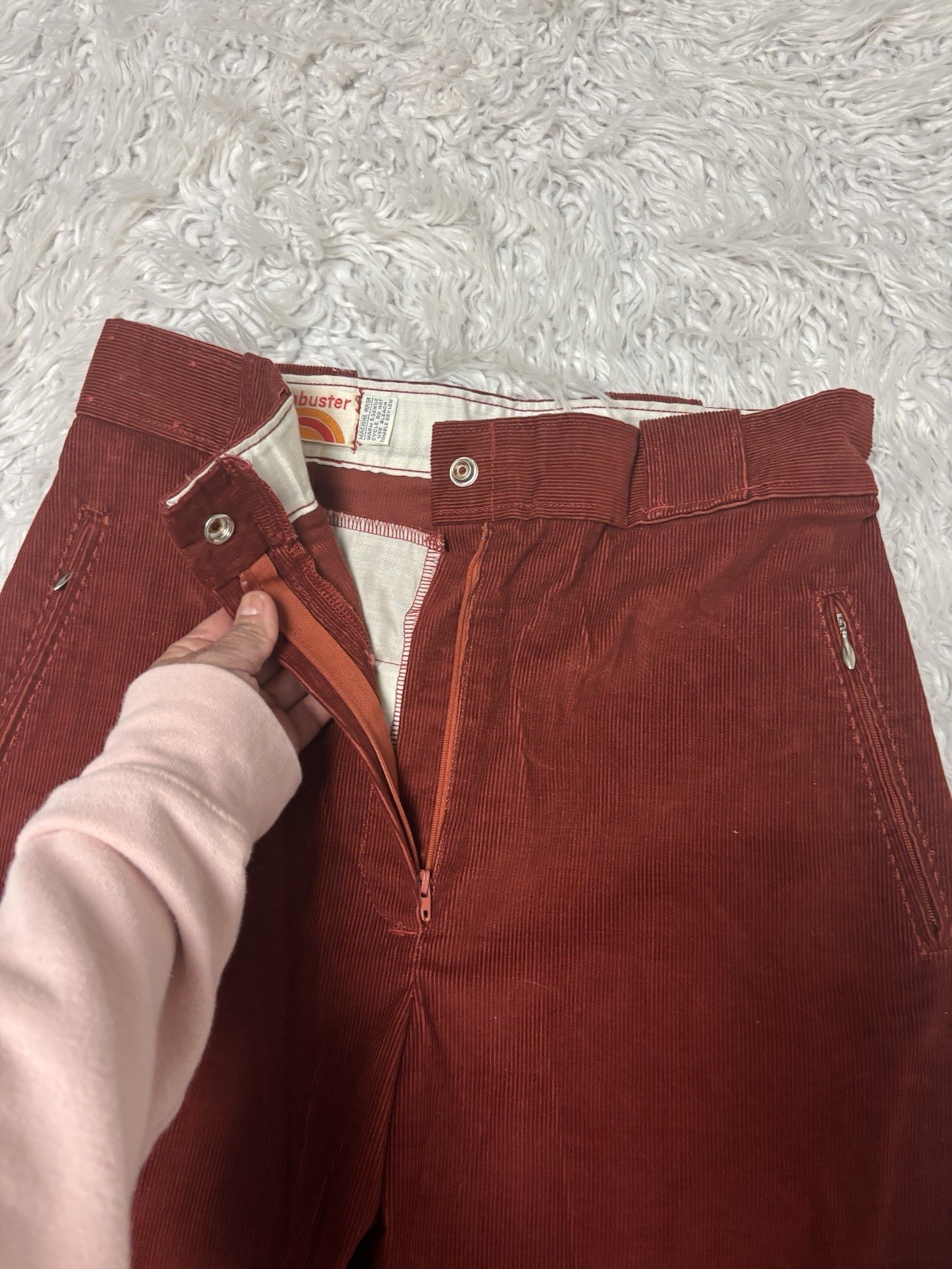 как выглядит Sunbuster Vintage 1970s Rust Red Corduroy High-waisted Capri Pants by Small фото