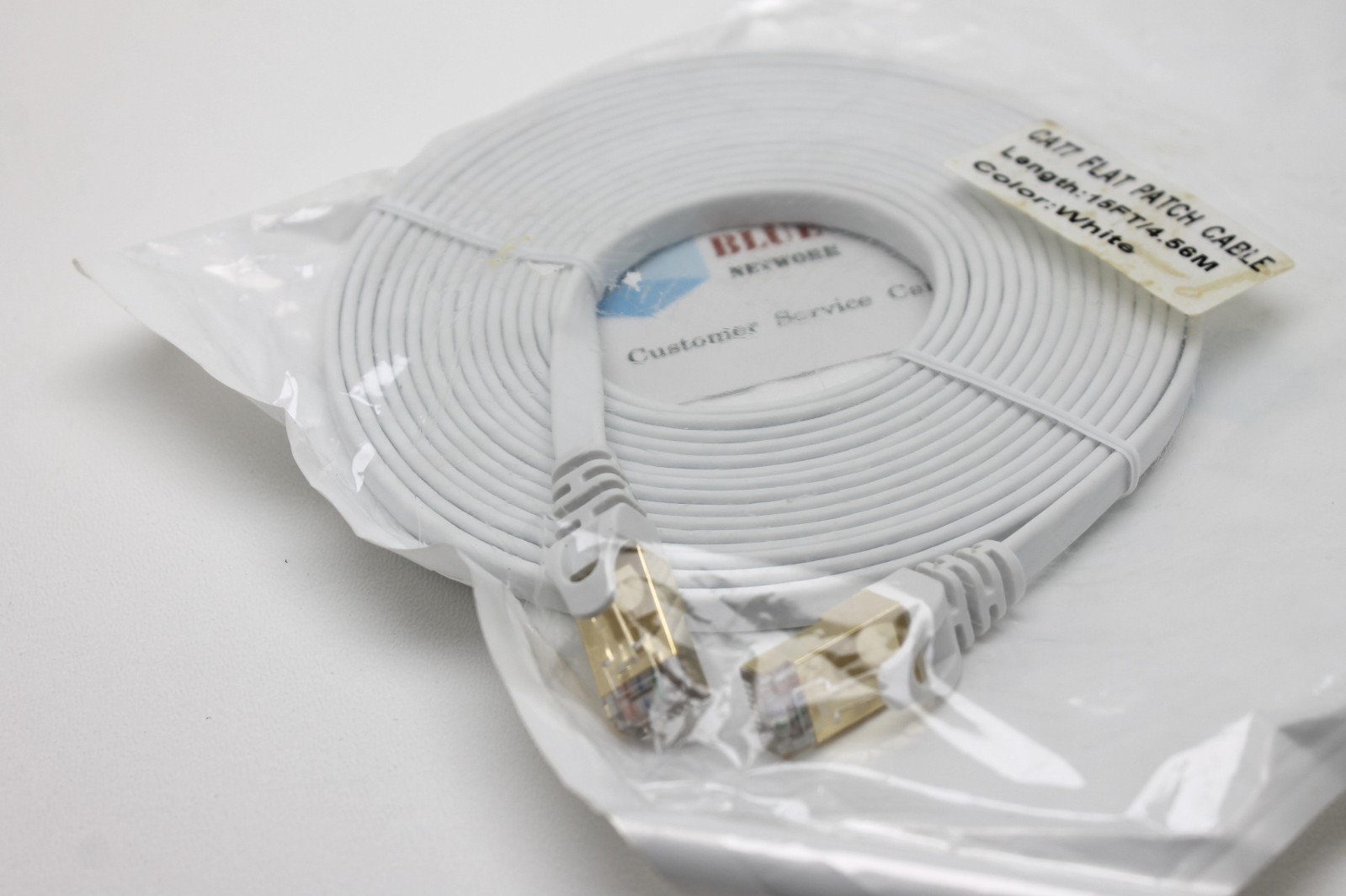 CAT7 Ethernet Cable 15 Ft Flat Patch Cord High Speed Blue Cube Network