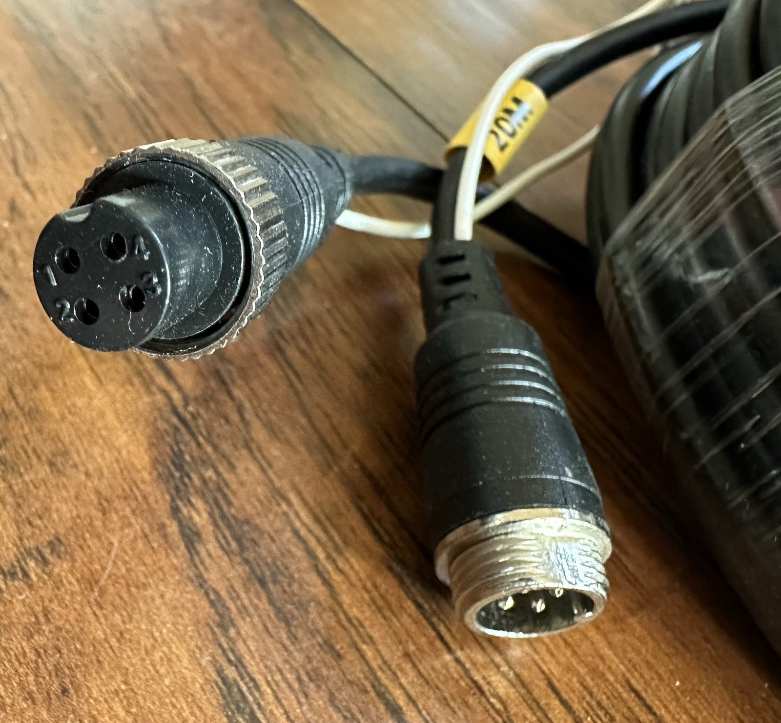 как выглядит 20M 66ft 4Pin Aviation Extension Cable For Rear View Backup Camera Truck Trailer фото