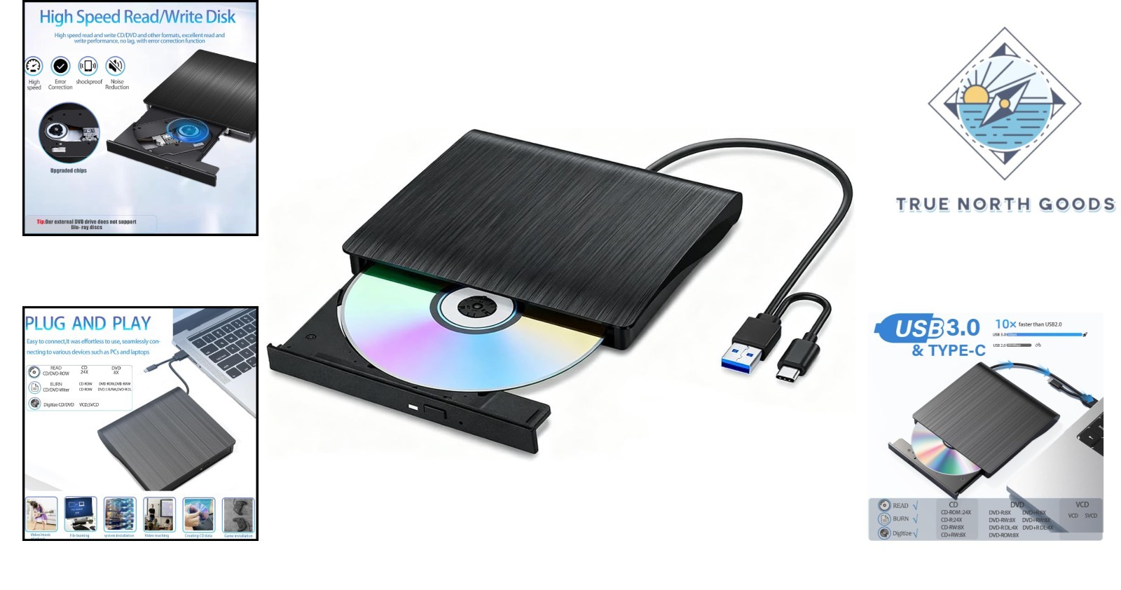 Readable Format: CD-ROM, DVD-ROM, CD-R, CD-RW, DVD+R, DVD-R, DVD-RW