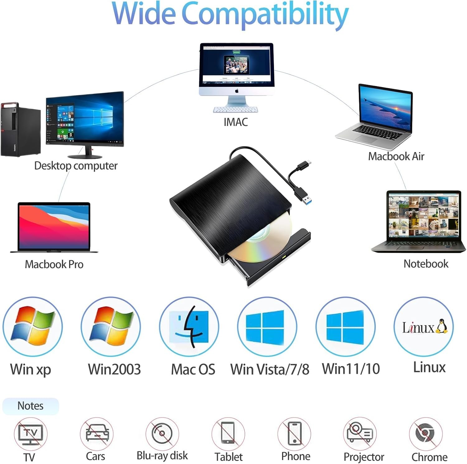 Compatible With: For Laptop, Mac, PC, Laptop, Desktop, Linux, Windows 11, Windows 10, Windows 8, Windows 7, Windows XP, Windows Vista