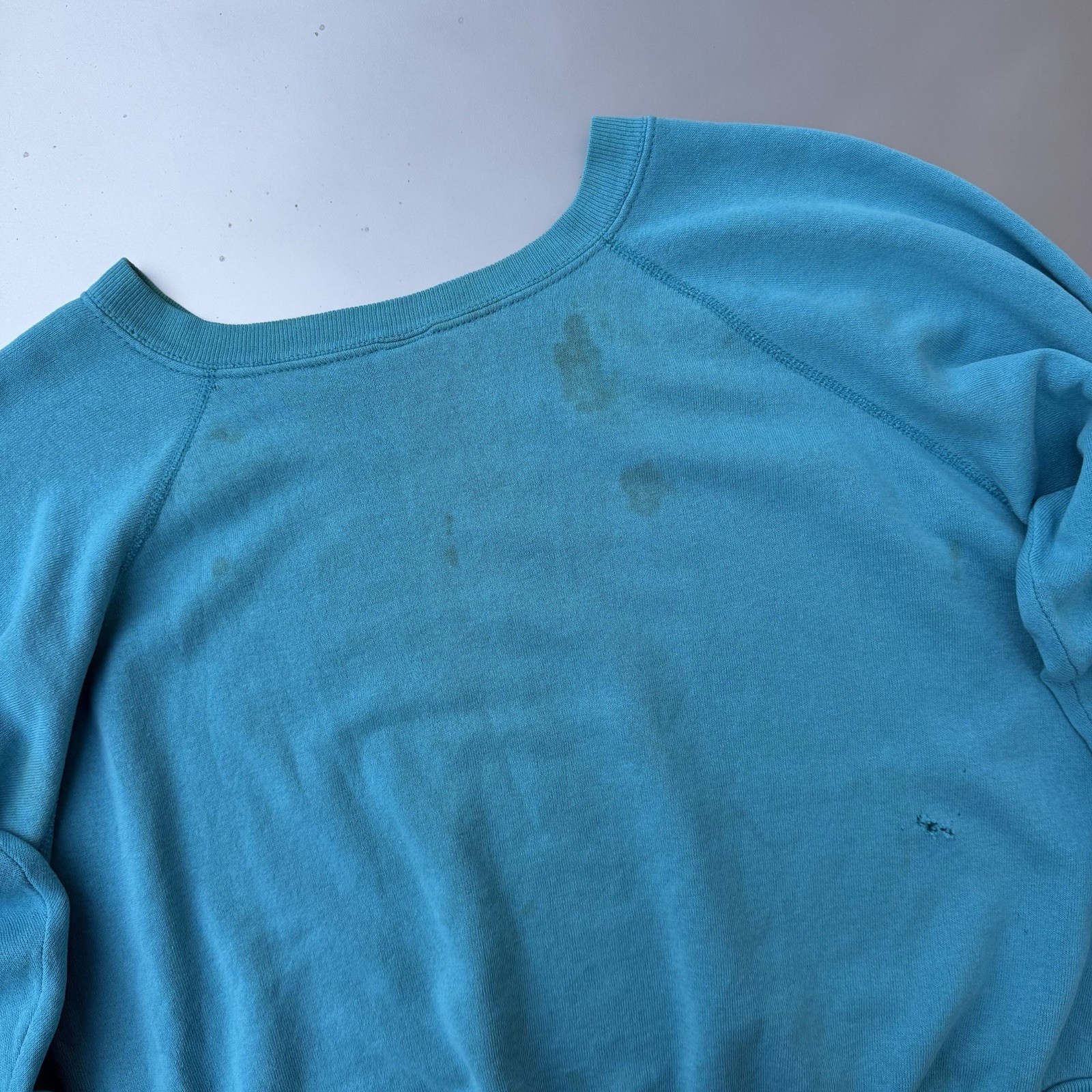 1970s Blue Raglan Blank Distressed Crewneck Sweatshirt 25.5X23.5 True Vintage